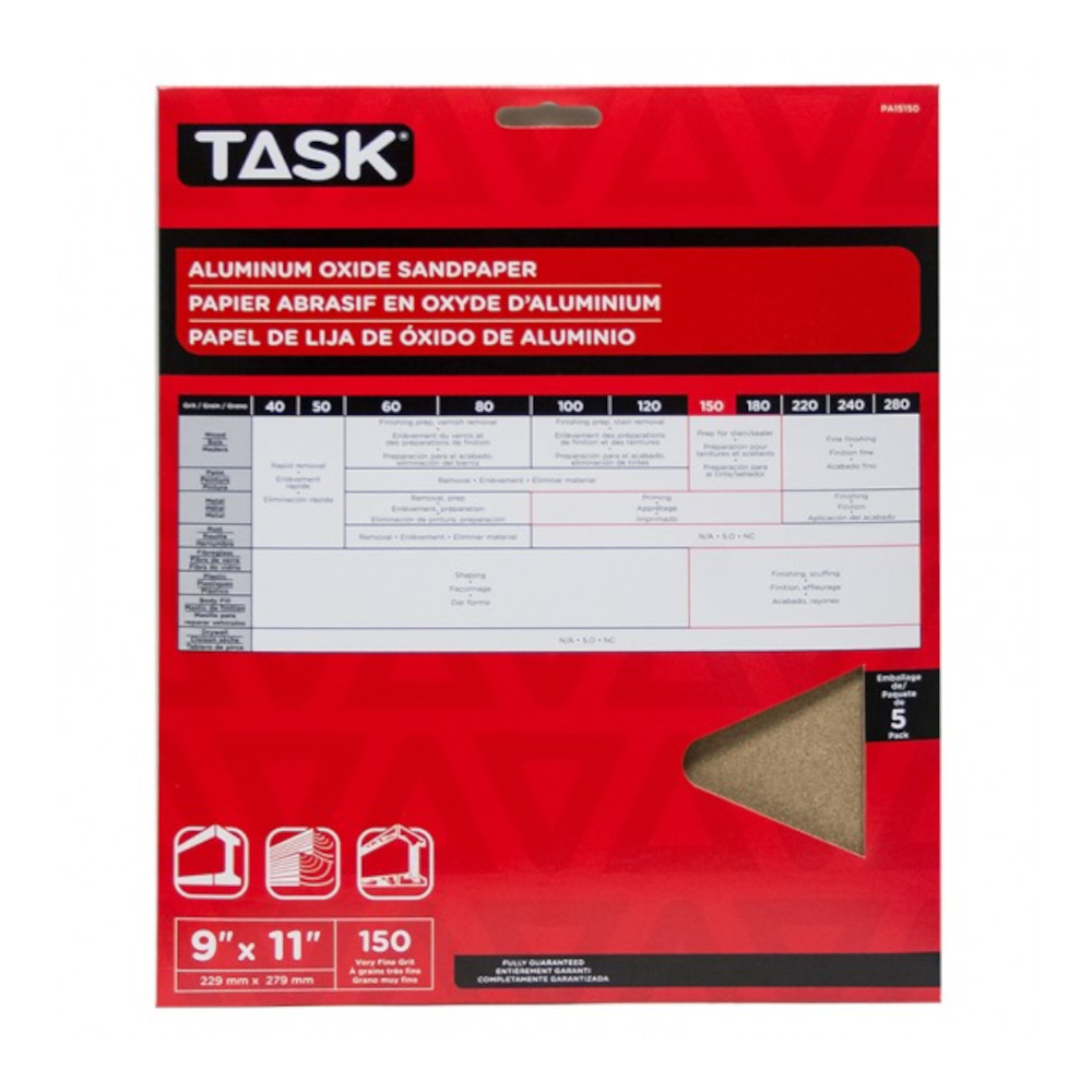 Task PA15150 11" x 9" 150 Grit Very Fine Premium Sandpaper, 5 Pack