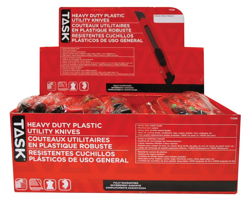 Task Auto-Lock Knife, 18 mm W Blade, Plastic Handle, Cut Material: Cardboard, Leather, Vinyl, Wallpaper, Wood