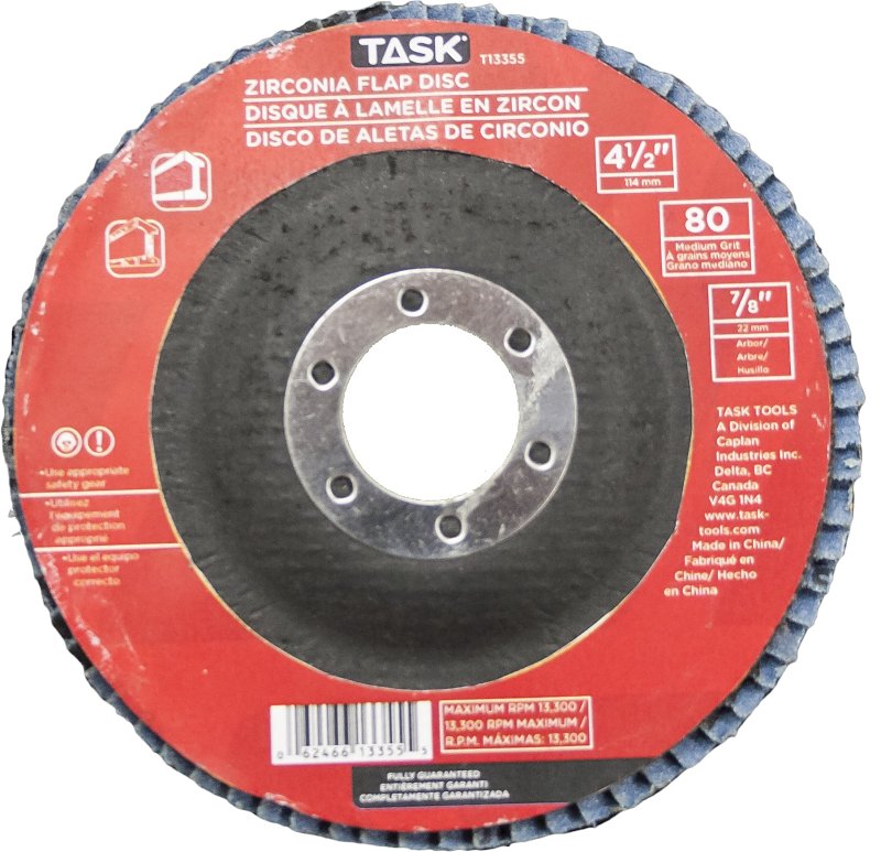 Task T13355 Flap Disc, 4-1/2 in Dia, 7/8 in Arbor, 80 Grit, Zirconia Alumina Abrasive