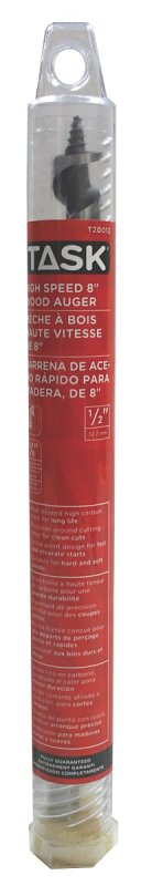 Task Auger Bit, 1/2 in Diameter, 3/8 in Shank Diameter, HCS, 8 in Overall Length