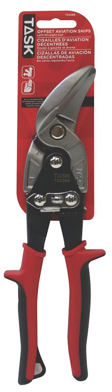 Task T22369 Aviation Snip, Left Cut, Chrome Molybdenum Steel Blade, Offset, Soft-Touch Handle, Red Handle