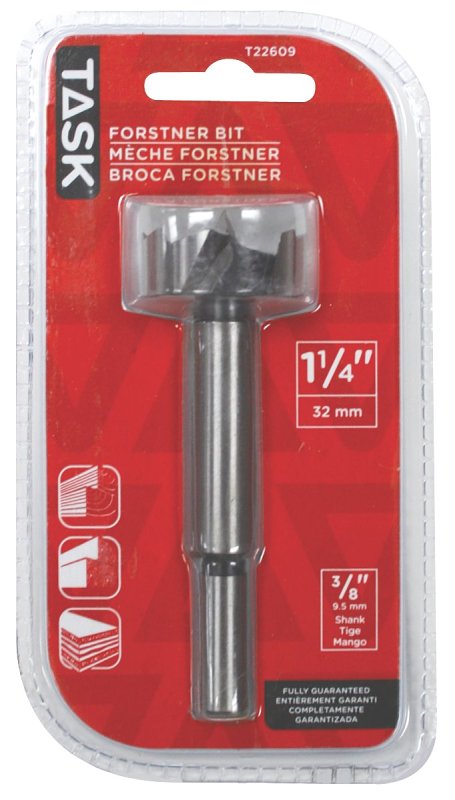 Task Drill Bit, 1-1/4 in Dia, Shank Type: Hex, Shank Diameter: 1/4 in, HSS, Applicable Materials: Exotic Wood, Hardwood, Plywood, Softwood, Includes: Hex Key