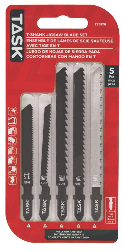 Task Jig Saw Blade Set, Shank Type: T, Cut Type: Straight, HCS/HSS, Working Length: Up to 2-3/8 in, Cut Material: Plastic, Wood, Includes: T23170, T23171, T23173, T23174, T23181 Jig Saw Blade