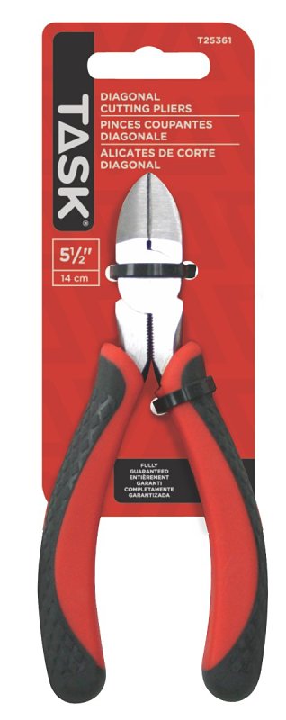 Task Diagonal Cutting Plier, Jaw Material: Carbon Steel, Jaw Finish: Polished, Soft Touch Grip Handle, Rubber Handle, 5-1/2 in OAL