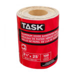 Task Sandpaper Roll, Aluminum Oxide Abrasive, 100 Grit, Grit Grade: Fine, 25 ft L, 3-2/3 in W, Applicable Materials: Fiberglass, Metal, Plastic, Wood