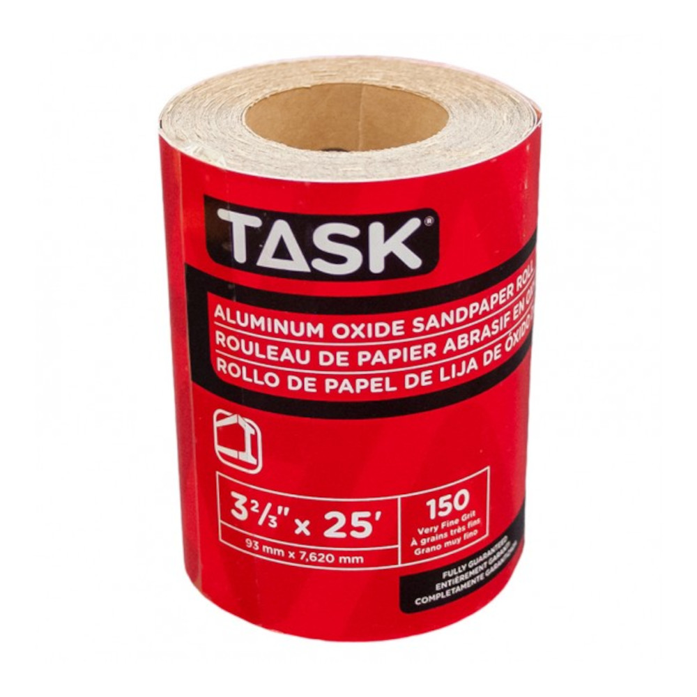 Task Sandpaper Roll, Aluminum Oxide Abrasive, 150 Grit, Grit Grade: Very Fine, 25 ft L, 3-2/3 in W, Applicable Materials: Fiberglass, Metal, Plastic, Wood