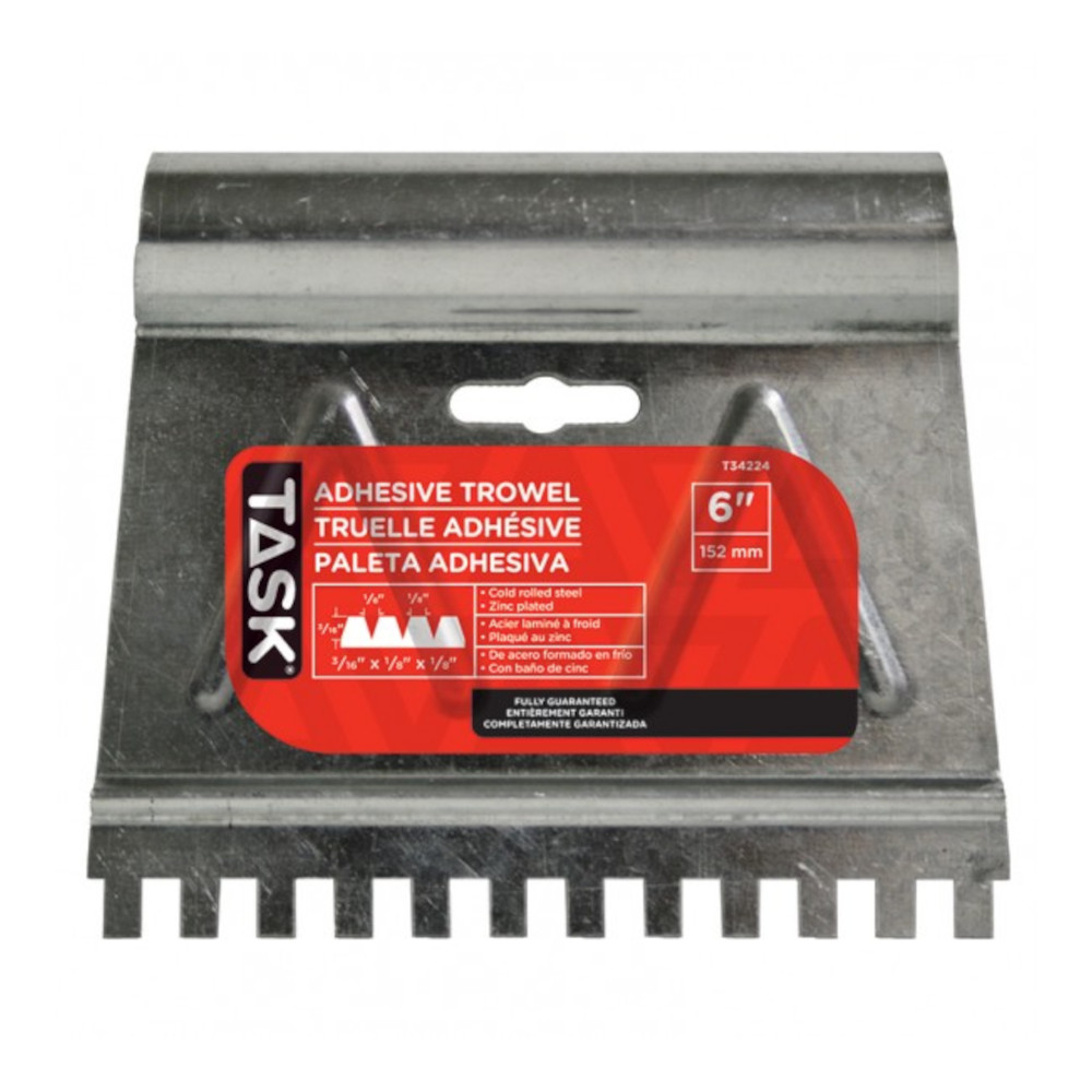 Task Adhesive Spreader, Steel Blade, 6 in L Blade, Zinc Blade, Notch Shape: V, Notch Size: 3/16 x 1/8 x 1/8 in