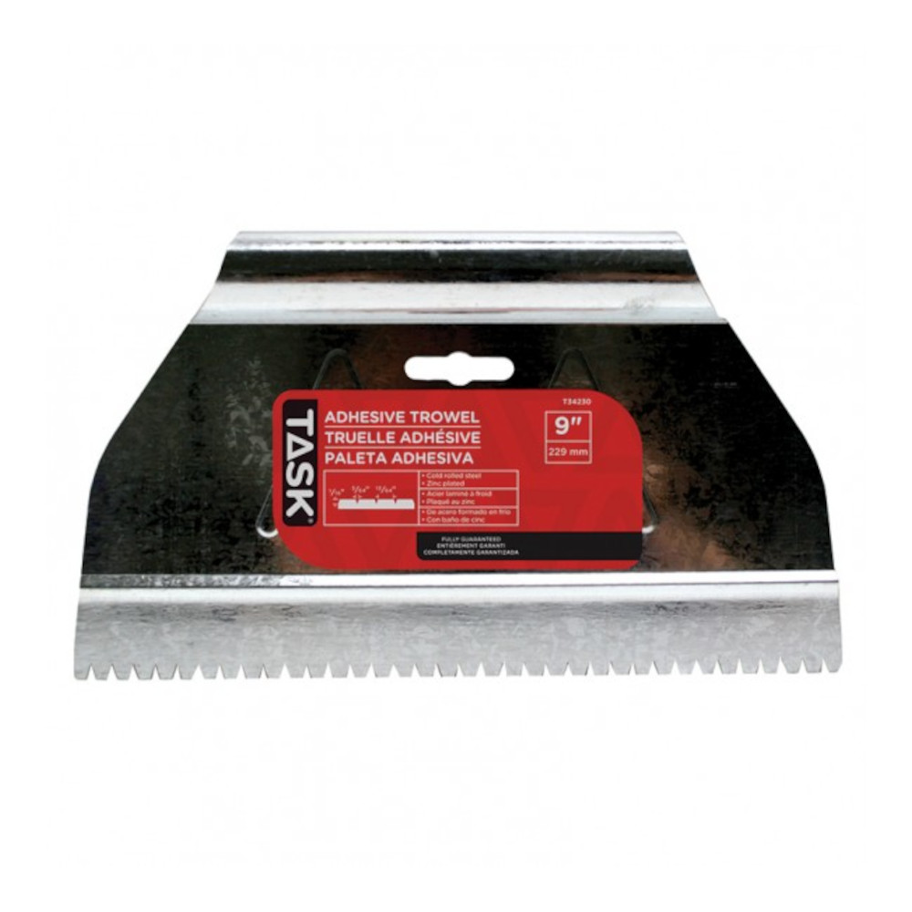 Task Adhesive Spreader, Steel Blade, 9 in L Blade, Zinc Blade, Notch Shape: V, Notch Size: 1/16 x 3/64 x 13/64 in
