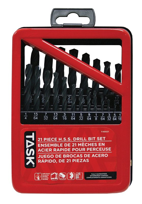 Task Drill Bit Set, HSS, Number of Pieces: 21, Includes: (21) 1/16 to 3/8 in Drill Bits