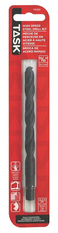 Task Drill Bit, 13/32 in Dia, Shank Type: Reduced, Shank Diameter: 3/8 in, Point Type: Split, Point Angle: 135 deg, HSS, Applicable Materials: Aluminum, Brass, Copper, Non-Ferrous Metal, Plastic, Steel, Wood