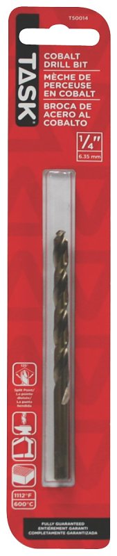 Task Drill Bit, 1/4 in Dia, Point Type: Split, Point Angle: 135 deg, Cobalt, Applicable Materials: Abrasive Materials, Hardened Tool Steel, Stainless Steel, Steel