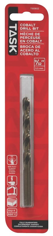 Task Drill Bit, 9/32 in Dia, Point Type: Split, Point Angle: 135 deg, Cobalt, Applicable Materials: Abrasive Materials, Hardened Tool Steel, Stainless Steel, Steel