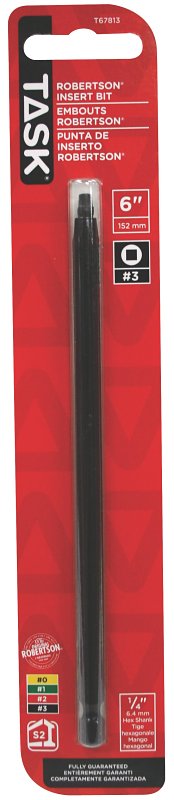 Task T67813 Two-Piece Screwdriver Bit, #3 Drive, Robertson Drive, 6 in L, Steel, 1/PK