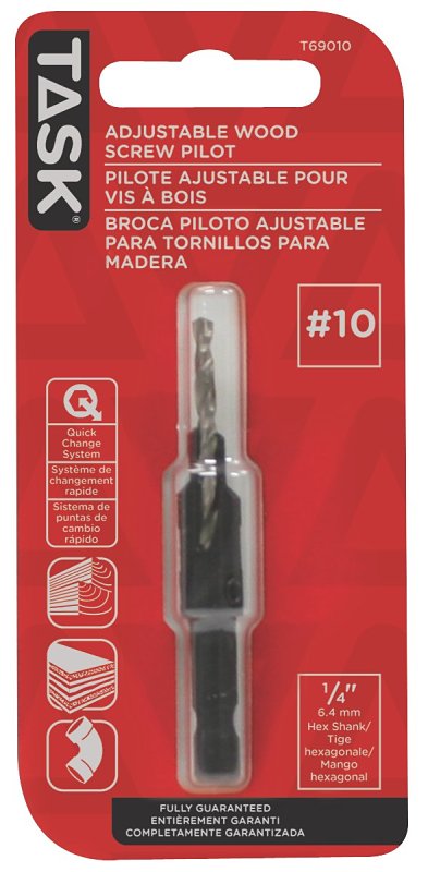 Task Screw Drill Bit, #10 Dia, Shank Type: Hex, Quick Change Shank: Yes, Shank Diameter: 1/4 in, Point Type: Pilot, Applicable Materials: Composition Board, Plastic, Wood, Suitable for: TASK and Similar 1/4 in Quick-Change Adapters