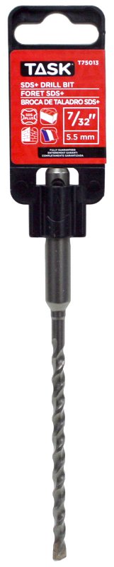 Task Rotary Hammer Drill Bit, 7/32 in Dia, Number of Flutes: 2, Flute Length: 4 in, Shank Type: SDS Plus, Cutting Edge Material: Carbide, 6 in OAL, Applicable Materials: Brick, Concrete, Ceramic Tiles, Roof Tiles