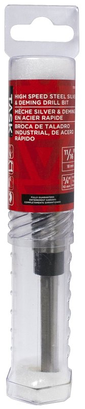Task Silver and Deming Drill Bit, 11/16 in Dia, Shank Type: Reduced, Shank Diameter: 3/8 in, Point Type: Split, Point Angle: 118 deg, HSS, 6 in OAL, Applicable Materials: Cast Iron, Hard Carbon Alloy Steel, HSS, Plastic, Wood