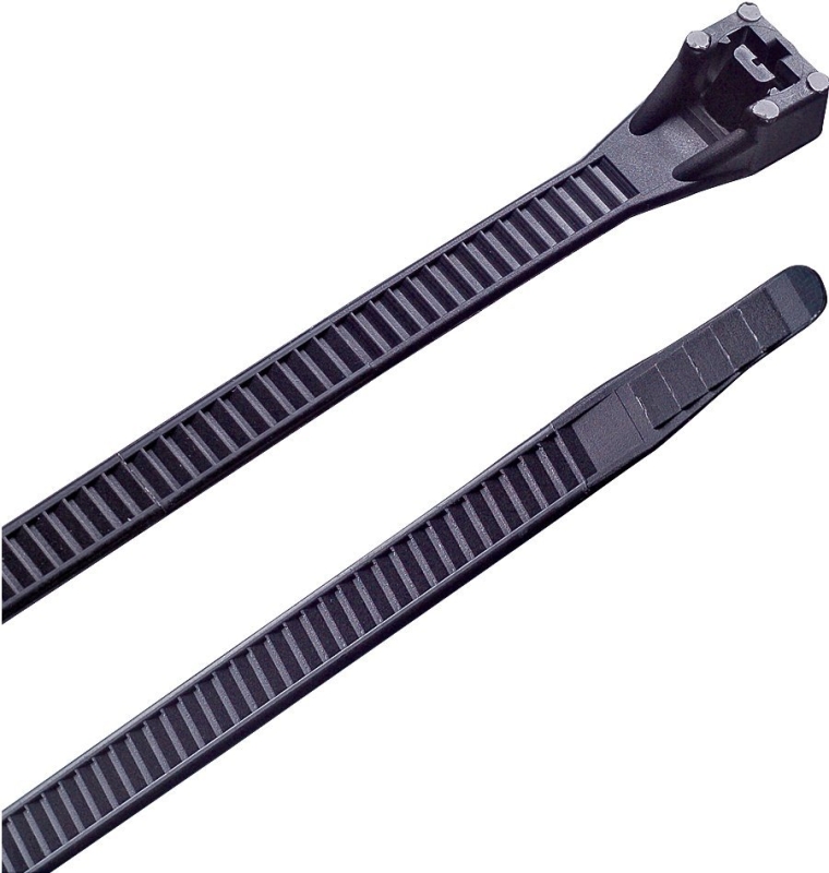 Heavy-duty zip ties are hard-wearing and designed for rugged industrial, automotive and farm/ag applications demanding high levels of tensile strength and large bundle diameters. Permanently secured until you cut them off GB ties lock tight without stretching or sliding. The thick nylon 6/6 material and patented one-piece, injection-molded construction eliminates failure due to parts working loose or breaking off. Raised ridges on the cable ties bent tips are designed to provide a secure grip while requiring minimal effort to close and the strong locking head ensures the increased tensile strength you need. Ideal for ducts, temporary fencing, heavy equipment and vibration prone areas in both electric and non-electric applications, including home repairs, remodeling, kitchen or bathroom renovations in residential and commercial locations. When you’ve got a big job that demands a strong tie able to handle a large bundle diameter then count on Gardner® Bender heavy-duty cable ties. UL recognized component. Ultraviolet black (UVB) ties resist harmful light rays – primarily for outdoor use.