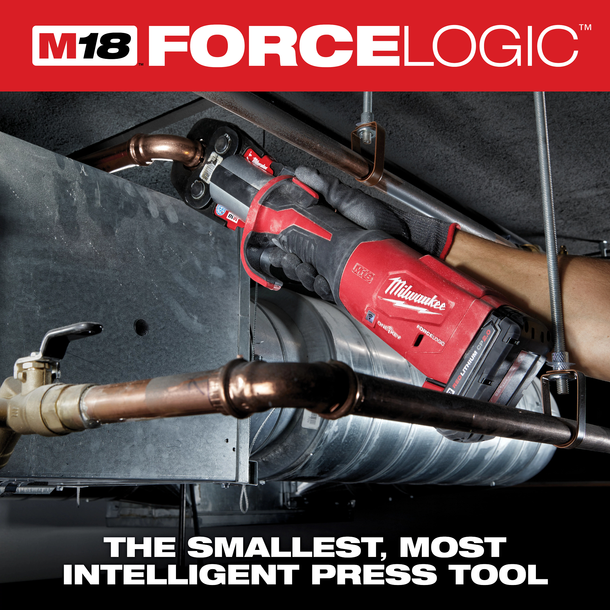 The MILWAUKEE® M18™ FORCE LOGIC™ Press Tool with ONE-KEY™ with 1/2″-2″ CTS Jaws is the industry’s first press tool with remote tracking, management, and lockout and is the smallest, most intelligent press tool on the market. The state-of-the-art press tool features an in-line design and brushless motor, enabling more run-time per charge and faster cycle times while being significantly smaller and nearly 20% lighter than the leading competitor. Like all Milwaukee press tools, the in-line design with a forward hand position unlocks the ability to press with one hand and will fit nearly anywhere an arm can fit. Equipped with REDLINK™ electronics, the cordless press tool also provides the highest level of press accuracy and reliability available in the industry. Auto-cycle ensures a full press every time and the pre-press battery check prevents the tool from starting a press it can’t complete. This press tool is ONE-KEY™ enabled, logging, and uploading data from every press for retrieval via the ONE-KEY™ desktop or mobile app. This allows for performance monitoring and provides peace of mind in quality connections. With ½” to 4” capacity and compatibility with over 20 unique fitting systems, the plumbing press tool is a comprehensive press solution for plumbers and mechanical contractors. This kit includes two M18™ REDLITHIUM™ CP2.0 battery packs, 1/2 in., 3/4 in., 1 in., 1 1/4 in, 1 1/2 in., and 2 in. jaws, and a carrying case.