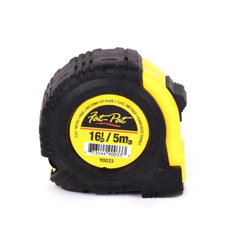 • 24PC Display • Fractional EZ-Mark facilitates reading • Stud markings every 16in • High-contrast black and red graduations for easy readability • Durable high-impact case for long life • Non-slip rubber grip • Rigid; long stand-out blade • S.A.E and Metric • Size: 3/4in x 16ft (5m) >>The Tooltech FatPat Tape Measure has a durable impact-resistant ABS case for longer life. Rigid; long stand-out blade with rubber bumper on blade return to extend blade life. Fractional EZ-Mark facilitates reading with its high-contrast black and red graduations.