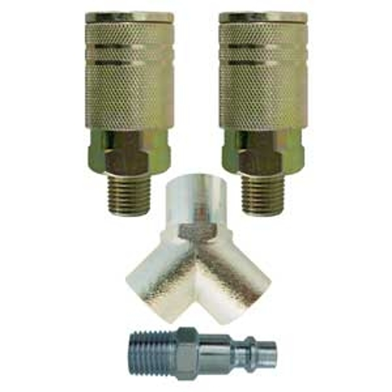 Topring Hose Splitter Kit, Includes: (1) 1/4 in FNPT Air Manifold Three-Way, (1) 1/4 in MNPT Plug Industrial, (3) 1/4 in MNPT Industrial Couplers