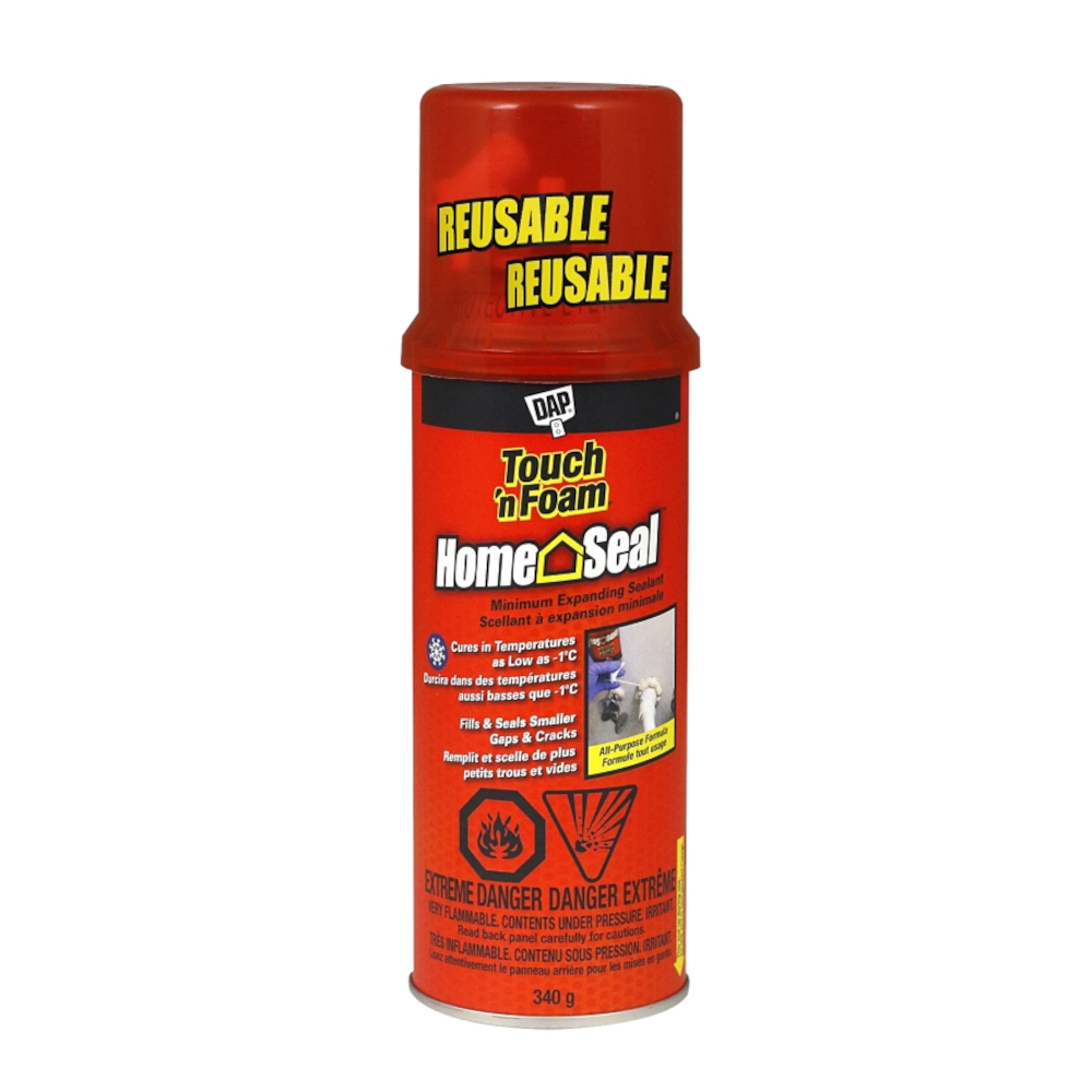 Home Seal is an all-purpose foam that is perfect for smaller cracks and voids. Use it on both indoor and outdoor applications. It performs in the widest range of temperatures among all Touch ‘n Foam products, ranging from 30 to 120 deg F. Fill small gaps in walls, around exhaust vents, plumbing fixtures, baseboards, sill plates and electrical outlet boxes.
