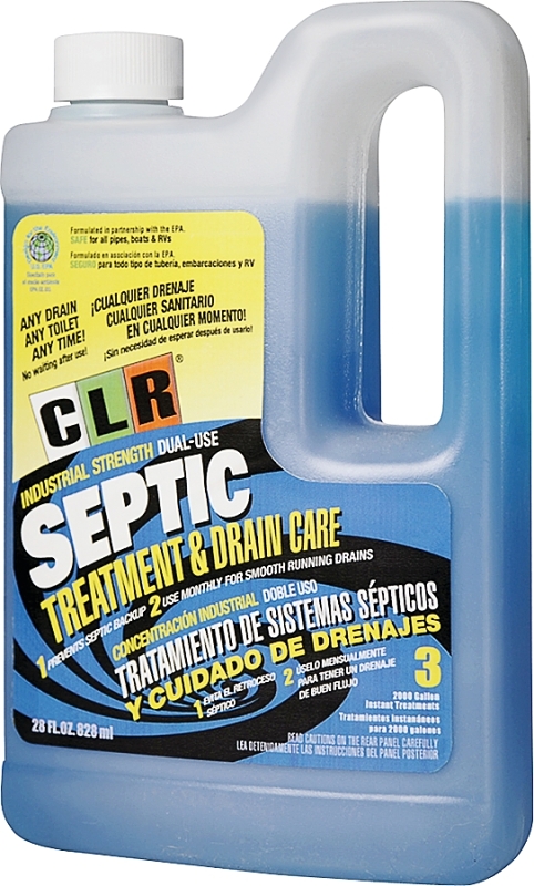 CLR septic system treatment is the only septic system treatment to be partnered with the EPA’s safer choice program recognizing the product as a safer alternative to chemicals. With 7 treatments for systems up to 2000 gal, it works instantly, can be used any time of day and its patented stabilization process allows for live, active bacteria to be deposited into the septic system. Unlike competitor’s products, this innovative formula does not contain detergents, preservatives and inert carriers that the bacteria attach to in use.