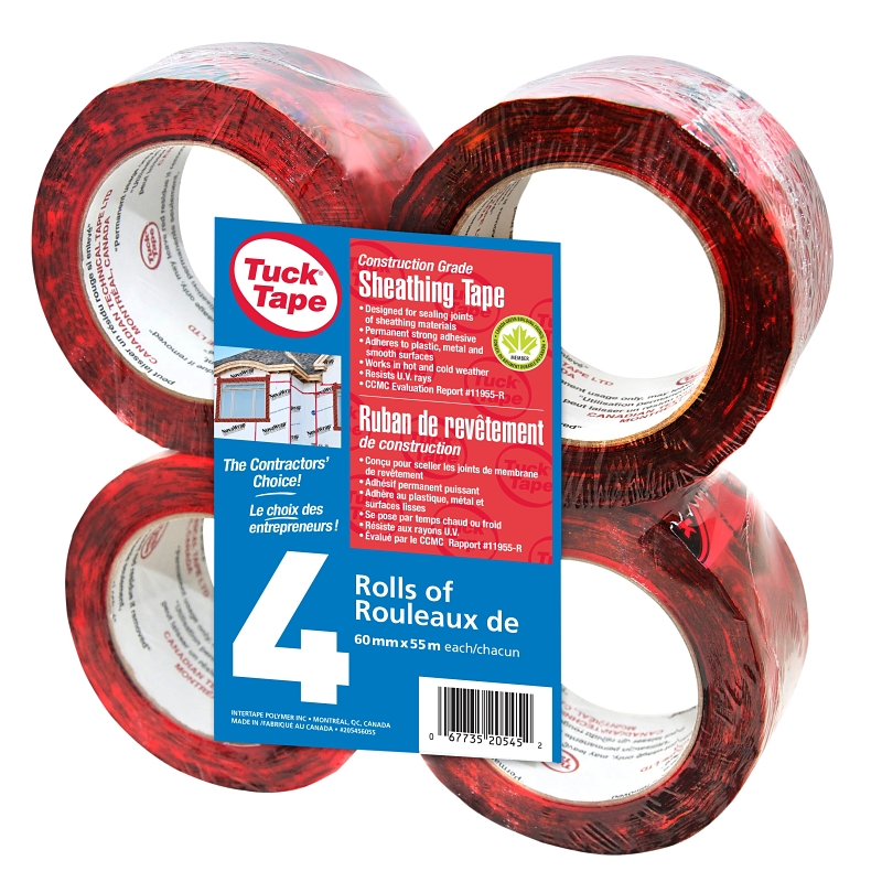 Tuck Tape 205456055 55m x 60mm Construction Grade Sheathing Tape, 4 Pack- Red