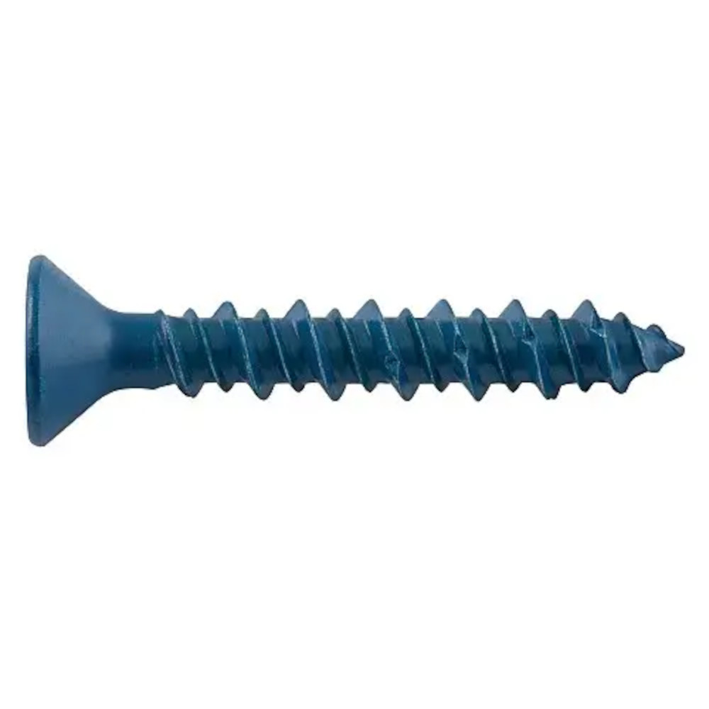 Concrete Anchor Screw, Anchor Diameter 3/16 in, Screw Size 2 1/4 in, Overall Length 2 1/4 in, Thread Length 1 7/8 in, Head Type Flat, Head Width Not Applicable, Head Diameter 0.38 in, Head Height 0.14 in, Drive Type Phillips, Material Steel, Finish Stalgard, Material Grade/Class Grade SW, Removable Removable, Compatible Material Block, Brick, Concrete, Wood, Drill Bit Size 5/32 in, Screw Anchor Type Concrete Screw Anchor, System of Measurement Inch, Includes Not Applicable.