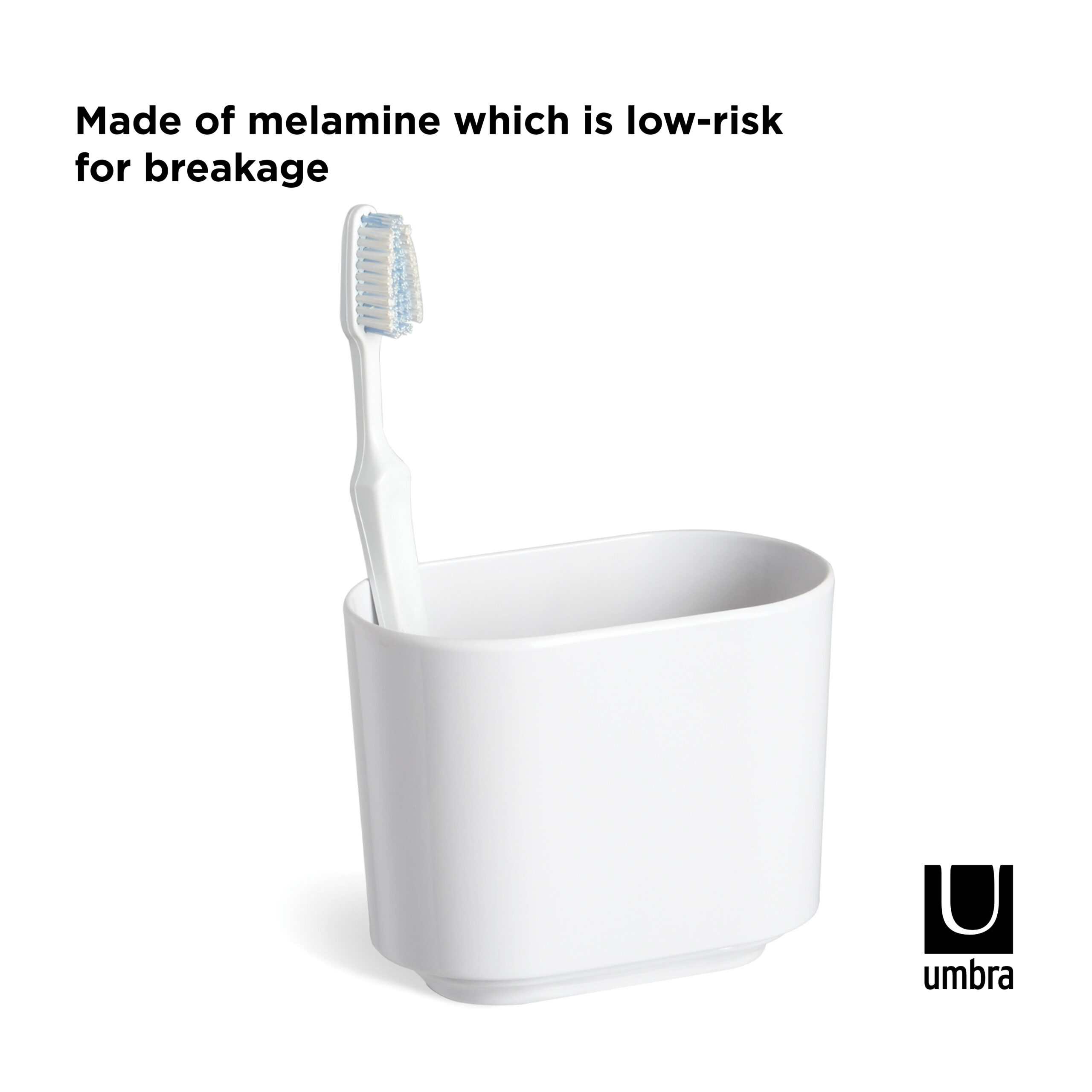 Step is made of the highly durable material melamine, meaning it is less likely to break in busy washrooms and kitchens. This modern and sleek toothbrush holder will hold your toothbrushes upright, ensuring they remain clean and dry after use. It measures 5 x 3 x 4 inches (13 x 8 x 10 cm). Pair this toothbrush holder with other accessories from the Step Bathroom Collection for a more cohesive look.
