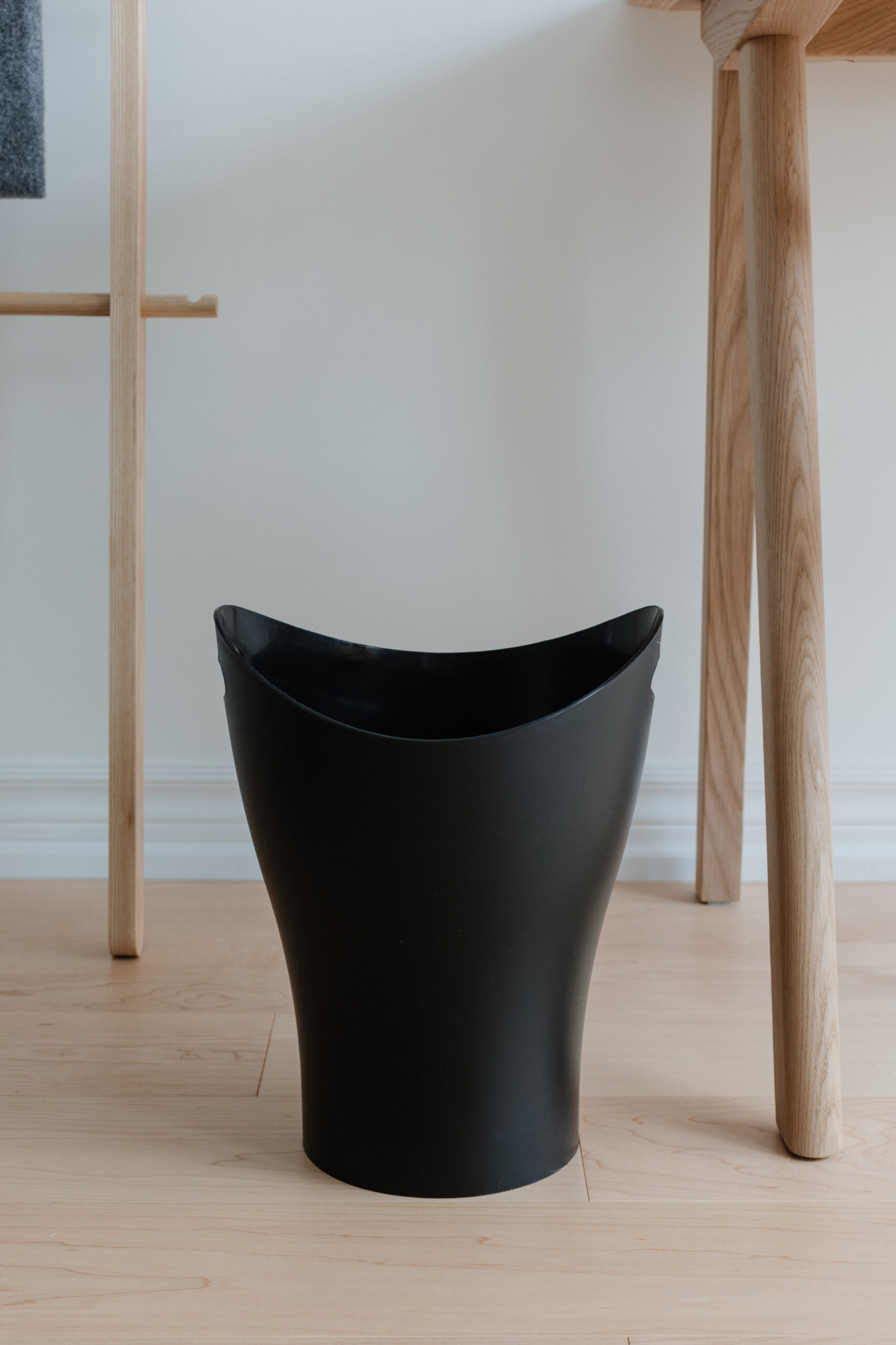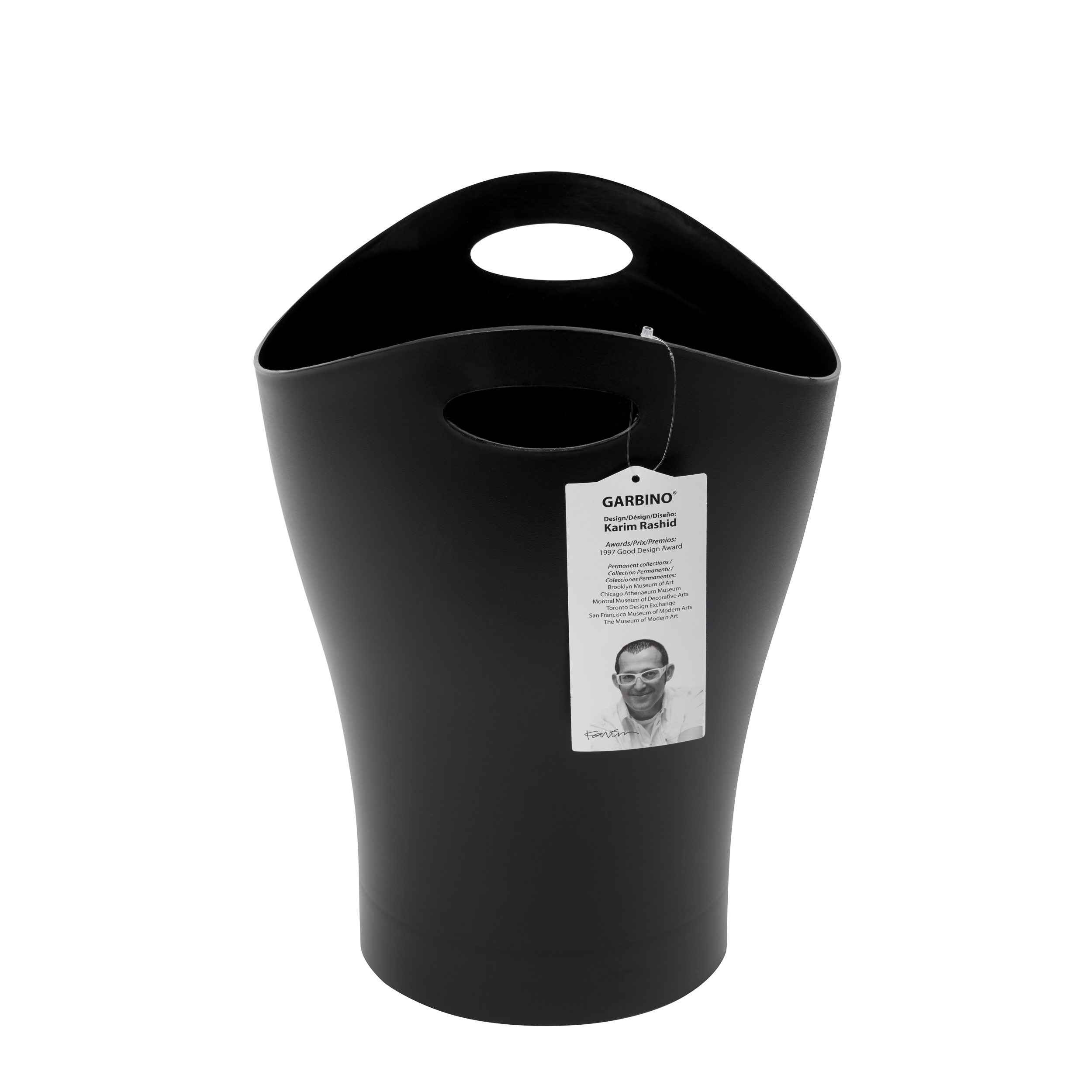 The Garbino can is Umbra’s award-winning garbage can. With a swerving rim, flowing curves, and clever use of negative space, this small can is bound to be pleasing to the eye. Available in an array of colors including matte black, translucent white, and as a recycling bin, you’re bound to find a Garbino that suits your space. This can measures 10 dia. x 13″ (25 dia. x 33 cm) and holds 2 ¼ gallons (9L). It will fit neatly under your kitchen sink, in your washroom, or under a desk. The curvy Garbino’s name is inspired by the acclaimed actress Greta Garbo, known for her famous curves.