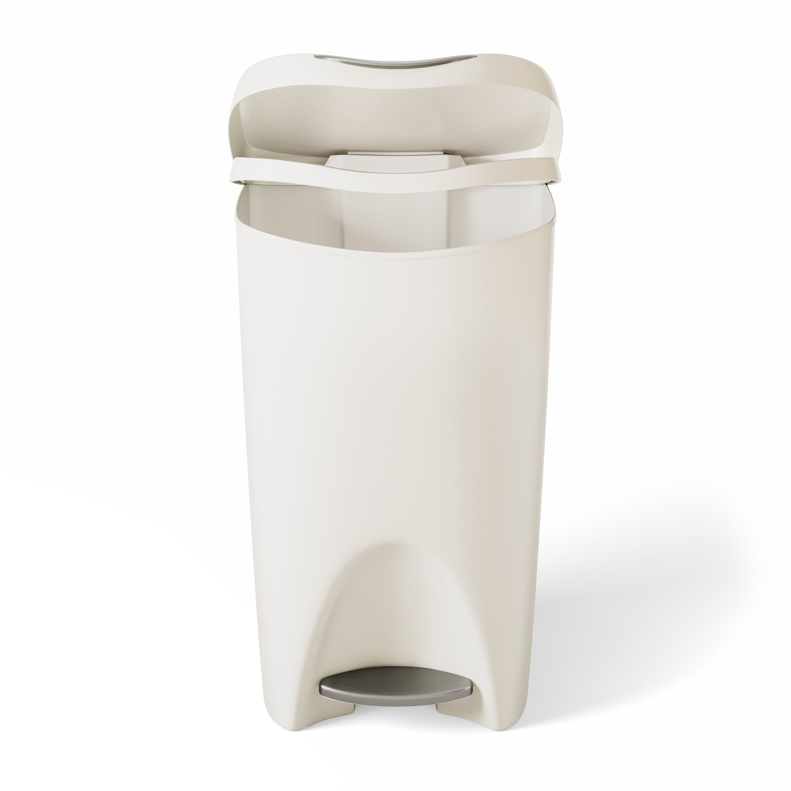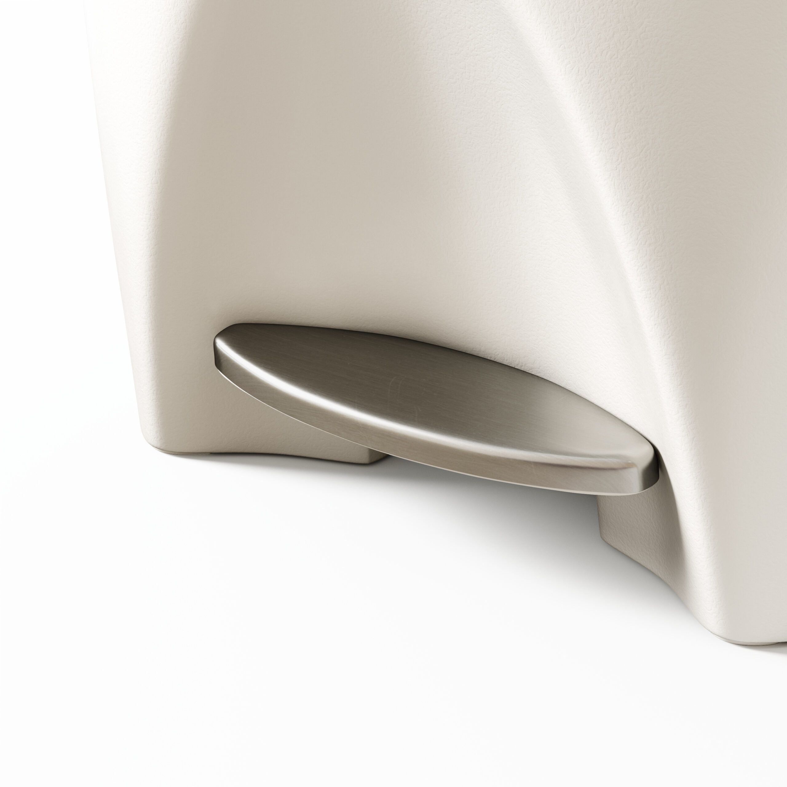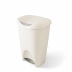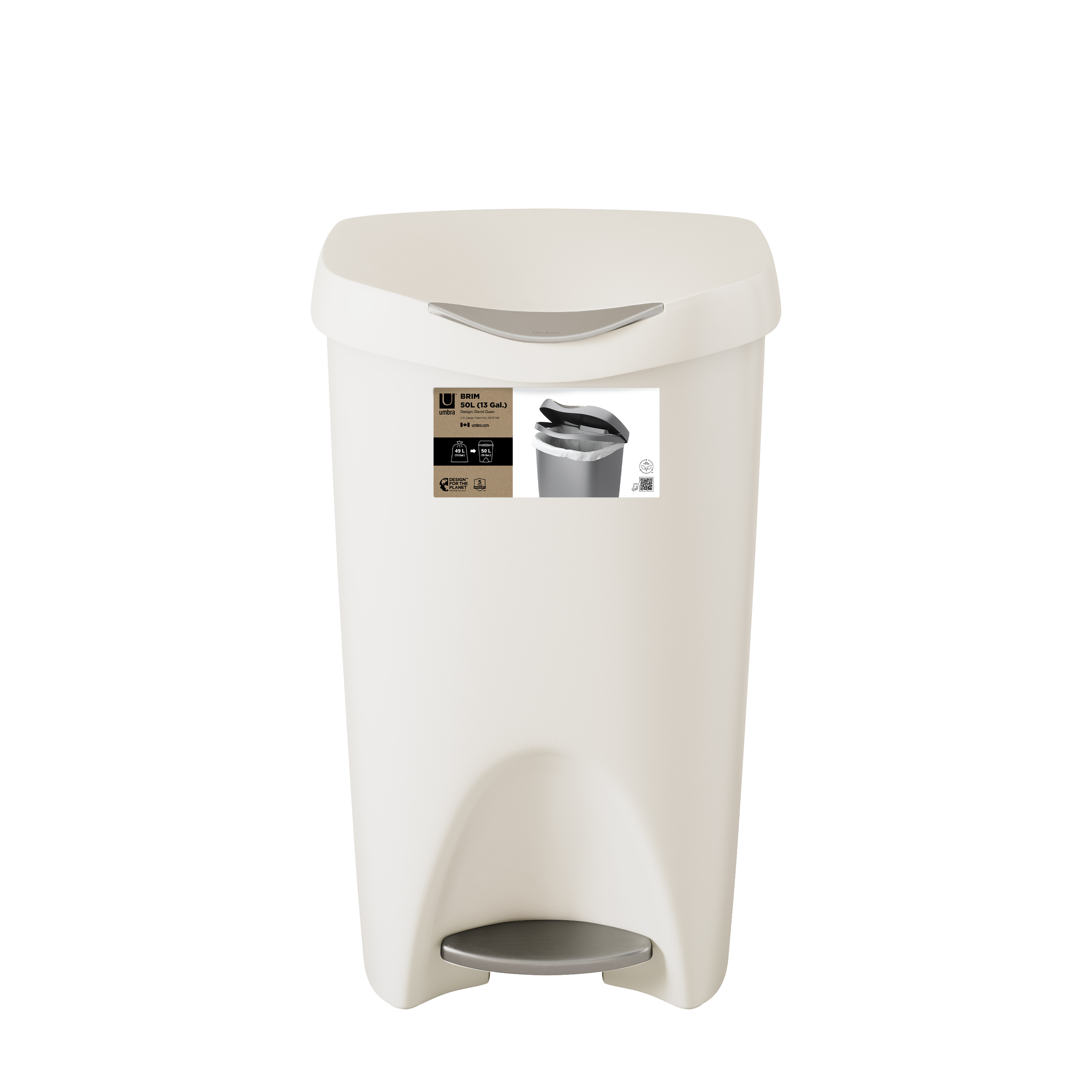 With its contoured lines and attractive satin finish, Brim provides an unexpected level of style that will compliment your kitchen decor. Brim features a stainless-steel foot pedal, that triggers the innovative soft-close lid system, and a retention ring that holds the trash bag firmly in place while concealing it. The wide-top design makes garbage bag removal easy, while the polypropylene construction makes it durable and sturdy – perfect for residential or commercial use. Measuring 25.5 x 16.4 x 12.25″ (65 x 42 x 31 cm), Brim has a 13-gallon (50L) capacity that supports most garbage bag types including draw-sting and flap-tie bags. Made with recycled plastics.