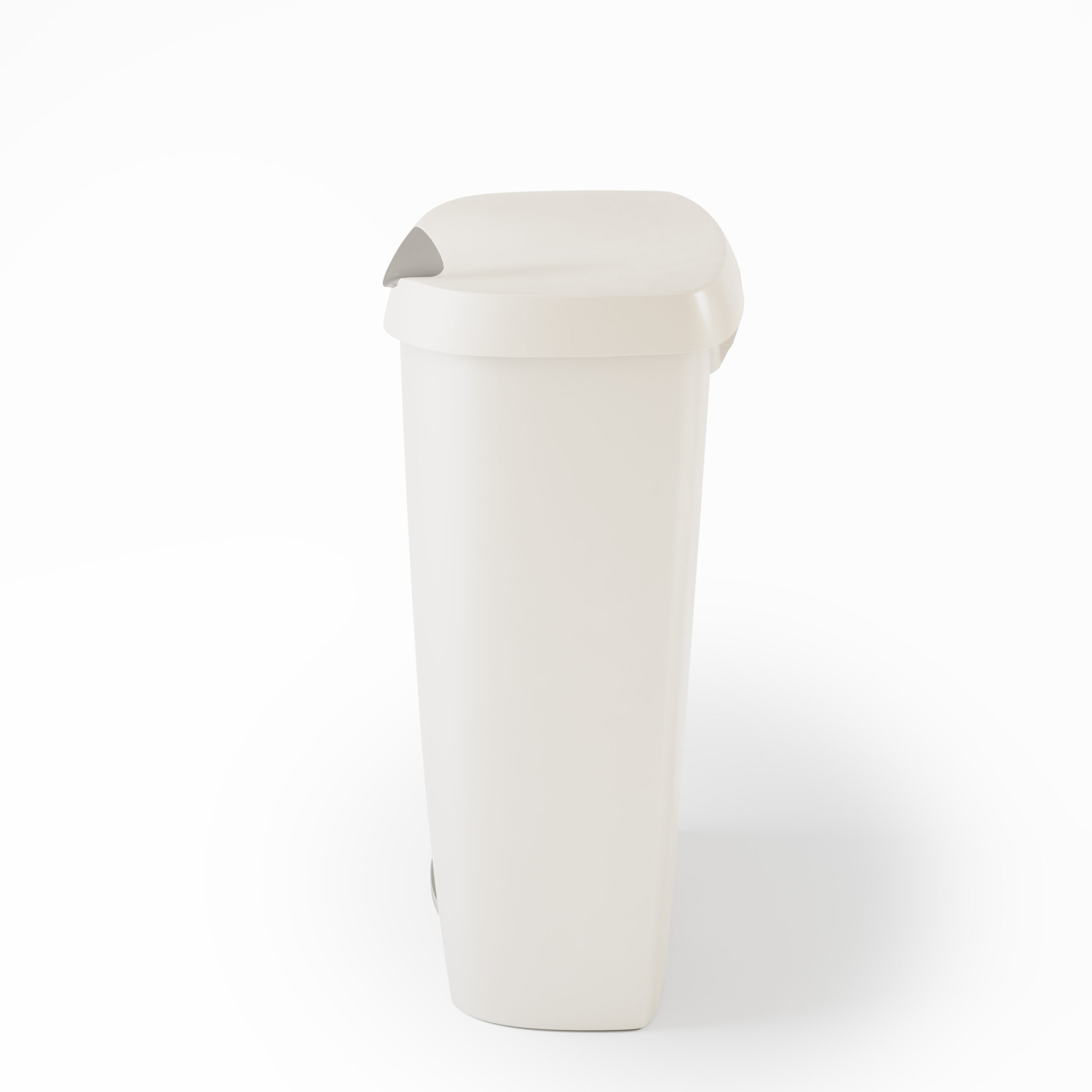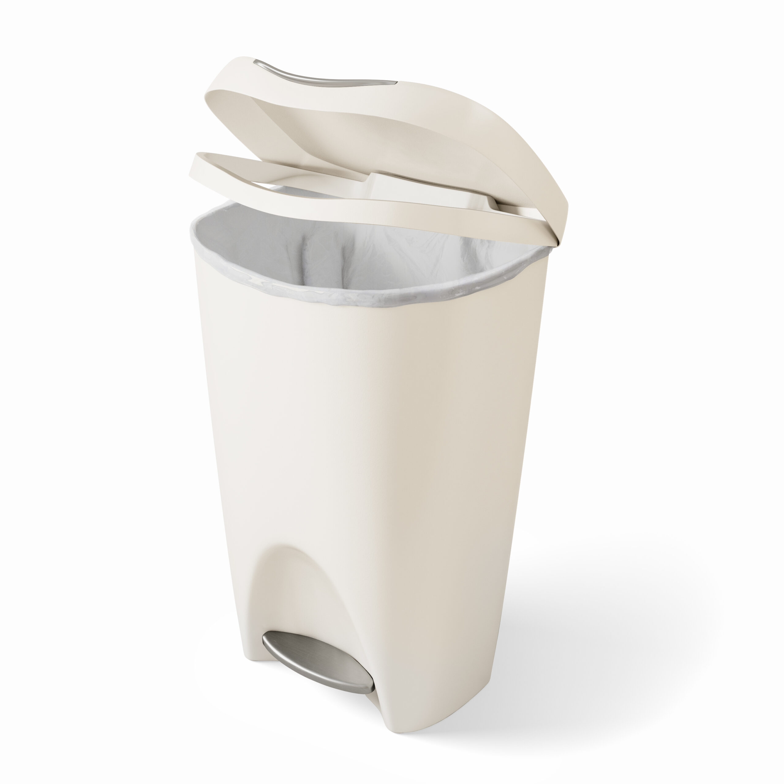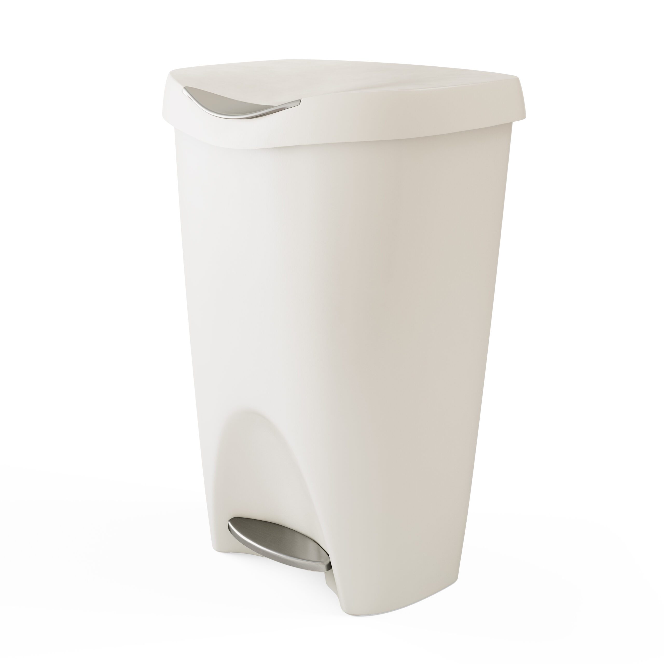 With its contoured lines and attractive satin finish, Brim provides an unexpected level of style that will compliment your kitchen decor. Brim features a stainless-steel foot pedal, that triggers the innovative soft-close lid system, and a retention ring that holds the trash bag firmly in place while concealing it. The wide-top design makes garbage bag removal easy, while the polypropylene construction makes it durable and sturdy – perfect for residential or commercial use. Measuring 25.5 x 16.4 x 12.25″ (65 x 42 x 31 cm), Brim has a 13-gallon (50L) capacity that supports most garbage bag types including draw-sting and flap-tie bags. Made with recycled plastics.