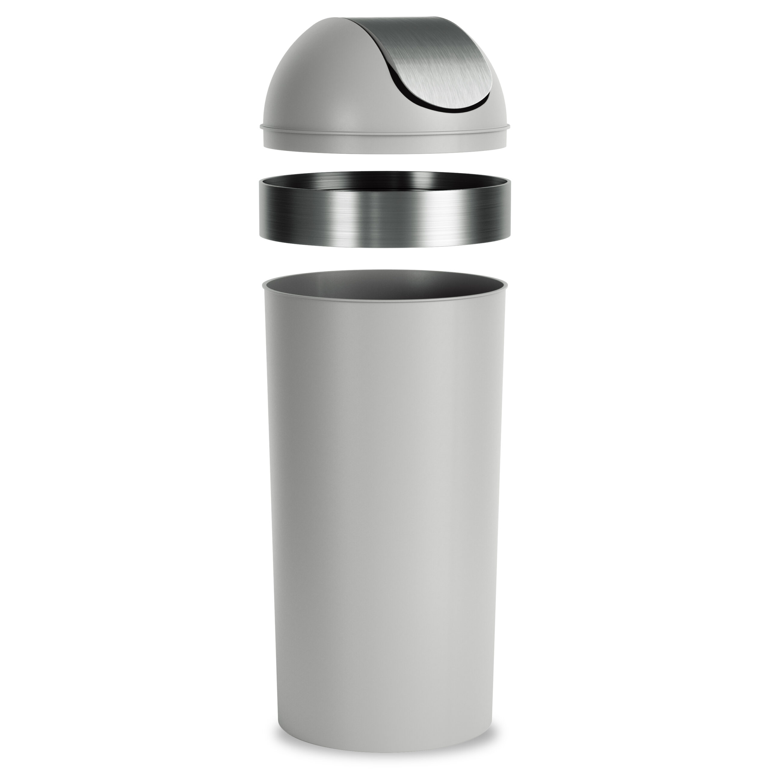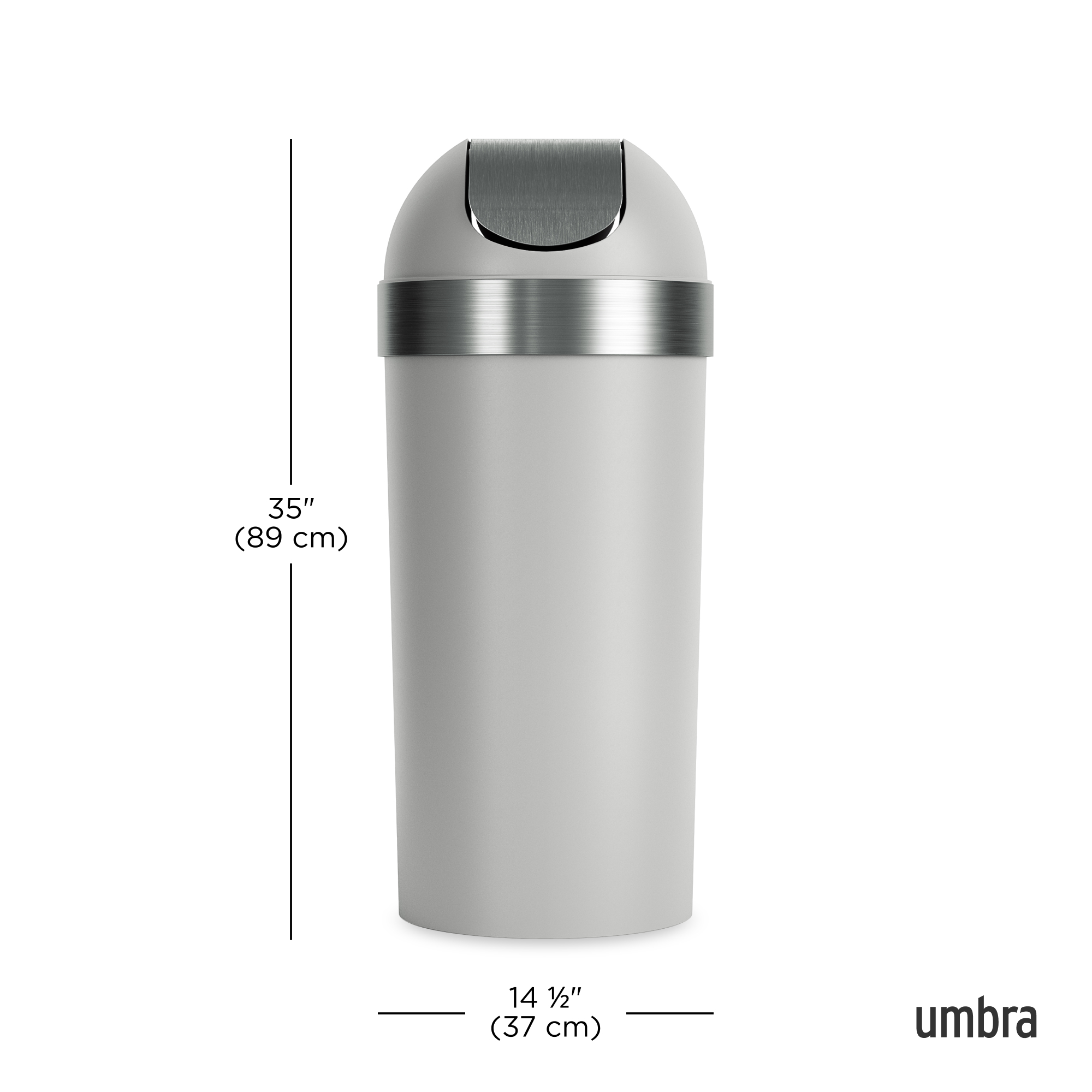 Umbra 086758-1188-REM 62L Venti Trash Can with Swing Top Lid – Grey & Nickel
