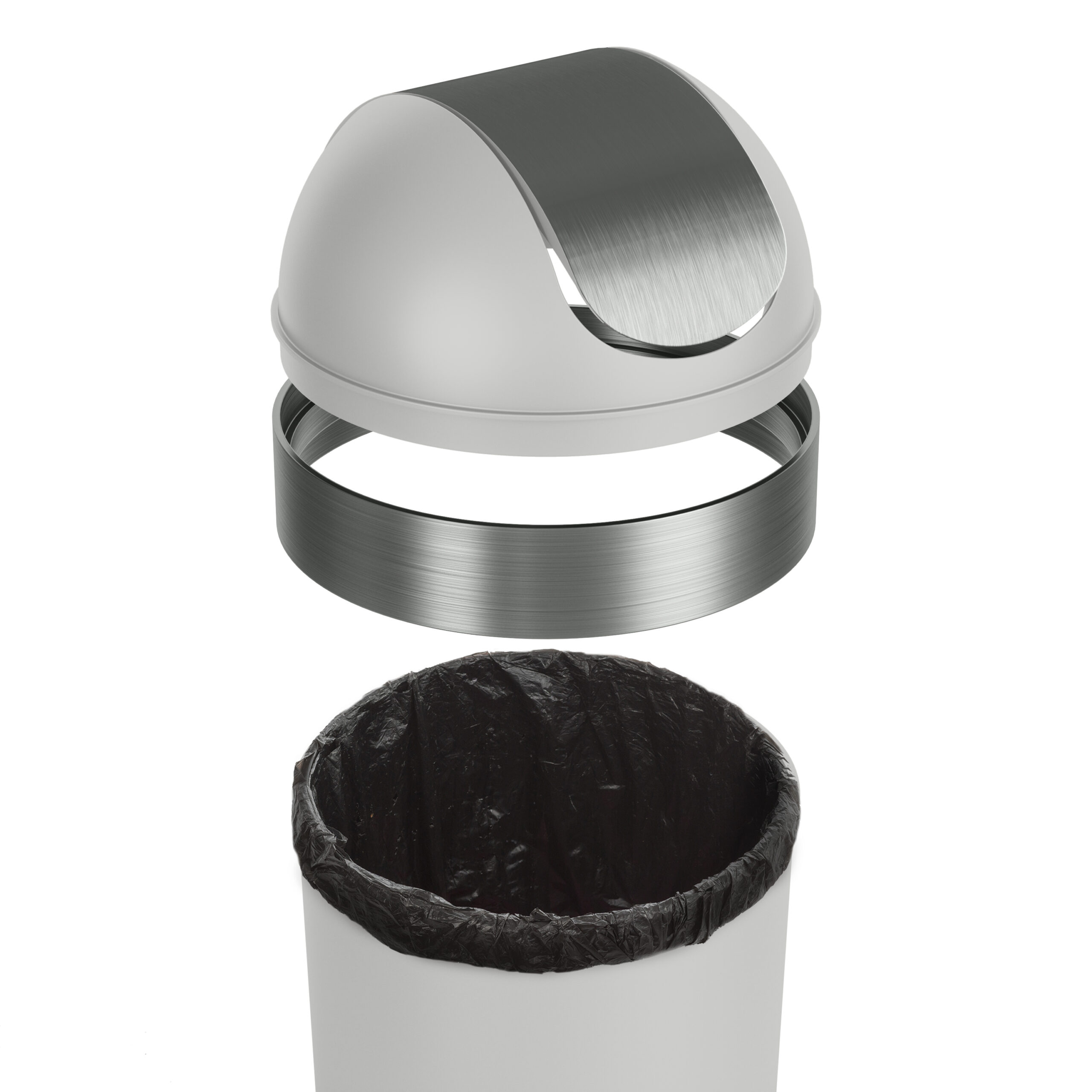 Style meets function with this large, easy-to-use garbage can. With sleek brushed metallic accents, a hassle-free molded swing-top lid, and an integrated neck ring, Venti keeps your waste out of sight. Venti Trash Can is sturdy, stable, and constructed of durable black polypropylene, which can be quickly wiped down with a damp cloth. Venti Trash Can is 35 inches (89 cm) tall by 14.6 inches (37 cm) in diameter, with a 16-gallon (62L) capacity. It works with 30-gallon garbage bags, including draw-sting and flap-tie bags. Venti is large enough in size so the bag doesn’t require constant changing but compact enough to fit in almost any space in your home.