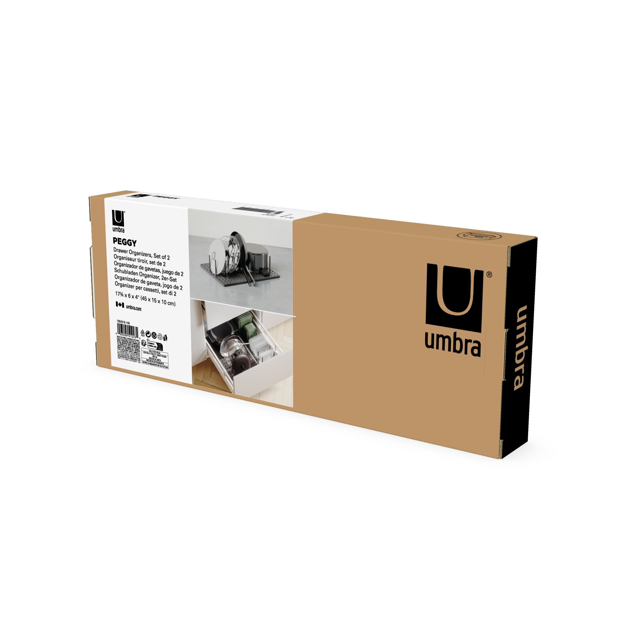 Umbra 1004318-149 Peggy Kitchen Cupboard, Shelf & Drawer Organizer Tray (Adjustable Storage System) – Charcoal