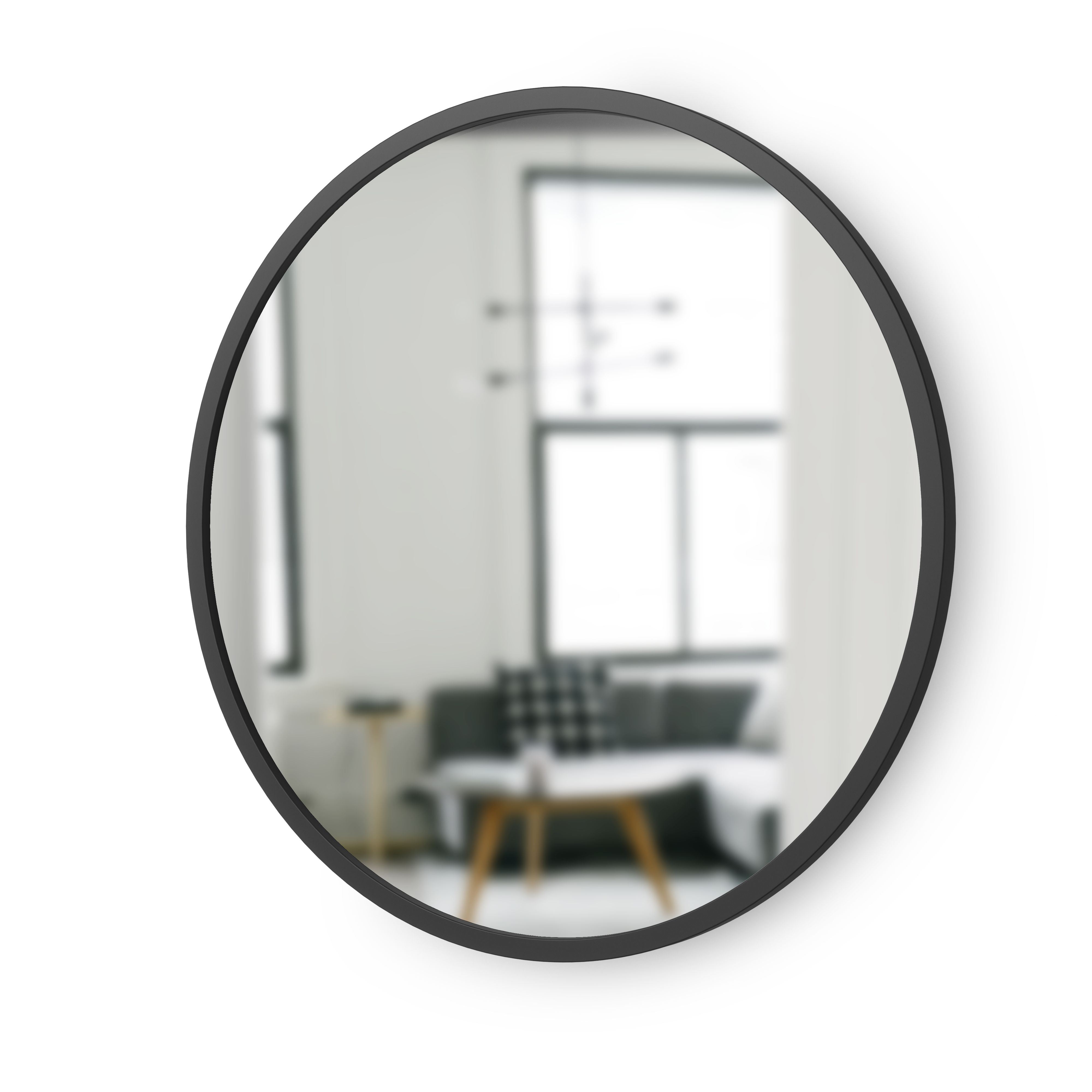 The Hub Mirror looks great in any room it’s put in. Its innovative rubber frame makes it more durable than a typical wall mirror, and gives it a modern, industrialized look. Its reflective surface helps to attract natural and artificial light, instantly making the room appear larger and brighter. With a clean and modern design, the Hub Mirror fits with a variety of decor styles and brings an instant refreshing touch to your wall. Available in a variety of finishes and sizes to best suit your space.