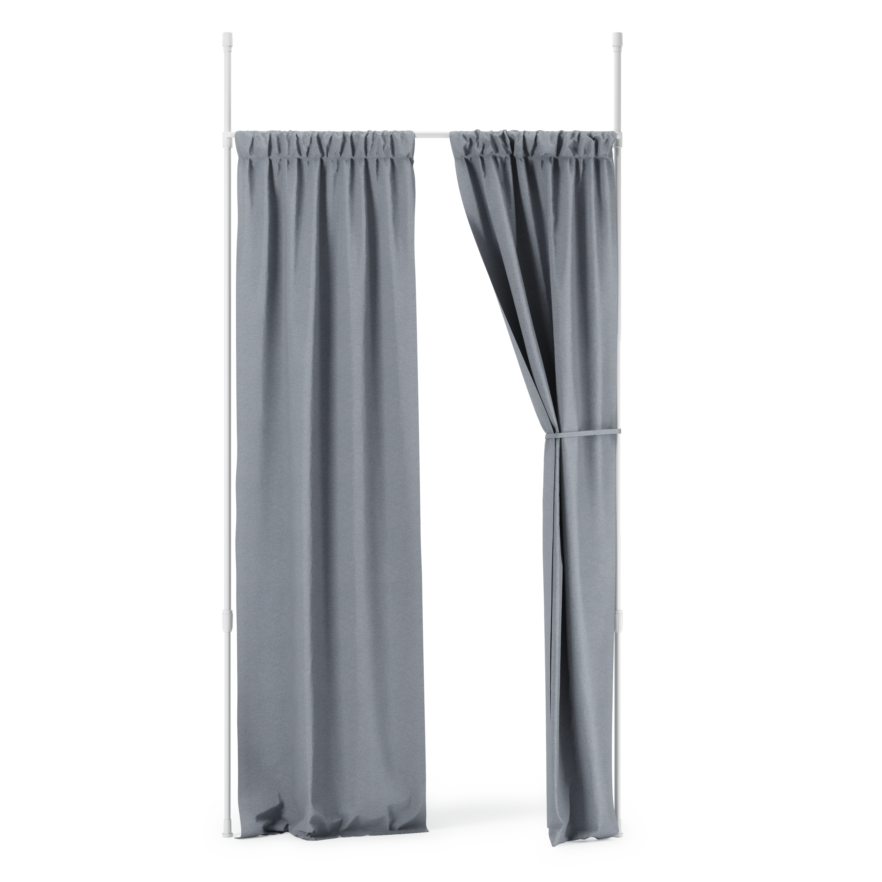 The Anywhere Solution is the easiest way to hang a curtain. The unique tension curtain rod system was designed to work in every hard-to-install area that you’ve ever encountered: rentals where you’re not allowed to drill, studios where you want more privacy or dorm rooms where you need to divide a space. Its wrap-around design keeps curtains flush against the wall, allowing for a better blackout. This tension curtain rod’s height can extend from 7-10 ft (213cm – 304cm) while its width adjusts from 36-66″ (91cm – 167cm); making it customizable to fit any space. Set up is completely damage-free, tool-free and requires 20 minutes or less. Simply adjust the height and width and lock in place.