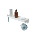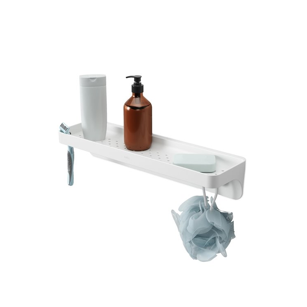 Maximize your bathroom space with the Umbra Flex Sure-Lock Shelf in white. Utilizing sure-lock technology, this shelf provides a vacuum seal grip on smooth surfaces like tile, glass, or melamine, ensuring a secure hold. Ideal for storing bottles, bars of soap, and razors, it features integrated drainage holes and rust-proof construction for durability. Easy to install without tools, the Flex Sure-Lock Shelf offers elevated, clutter-free storage and comes with a 5-year manufacturer warranty.
