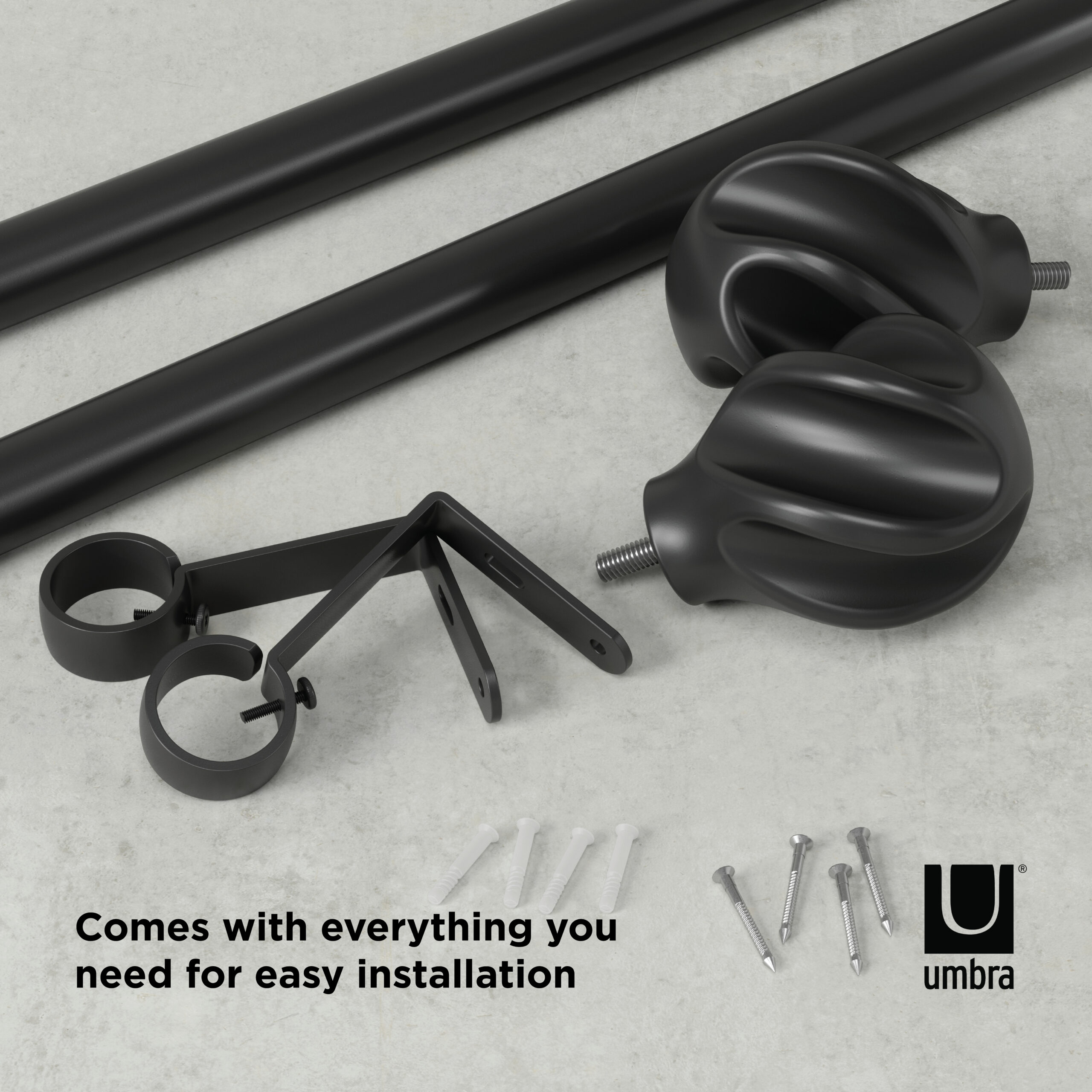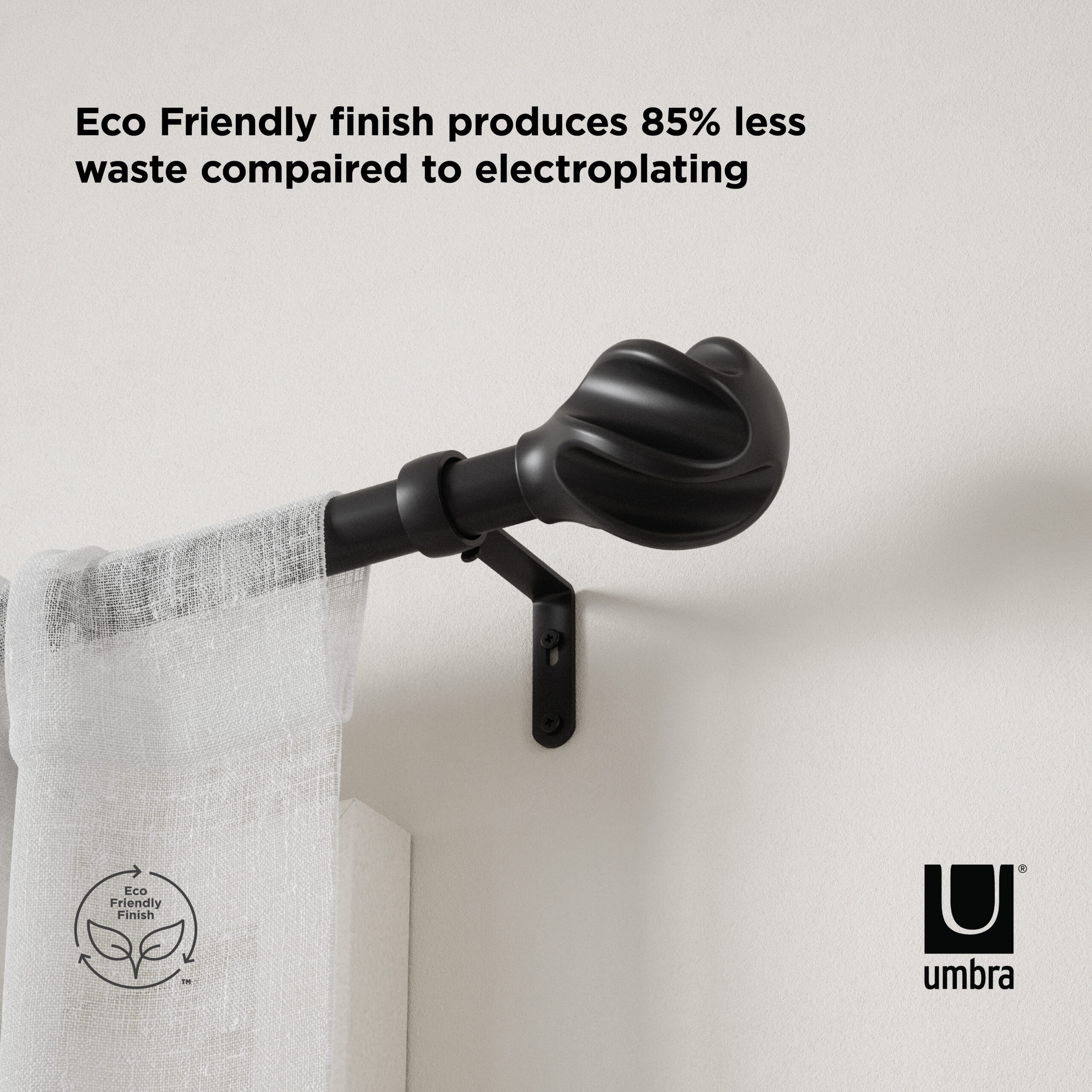 Featuring an intriguing twirl form, Helix adds a subtle eye-catching element to your window treatments. It fits a wide range of windows to best suit your space. Made of steel and resin, this curtain rod is durable while remaining attractive in design. Includes all necessary mounting hardware for an easy installation. Helix curtain 1″ (2.5cm) diameter rod is adjustable to fit a variety of windows and supports curtain sets weighing up to 22lbs. (10kg). This curtain rod is made with an eco-friendlier finish. It produces 85% less water and solid waste than traditional electroplating finishes.