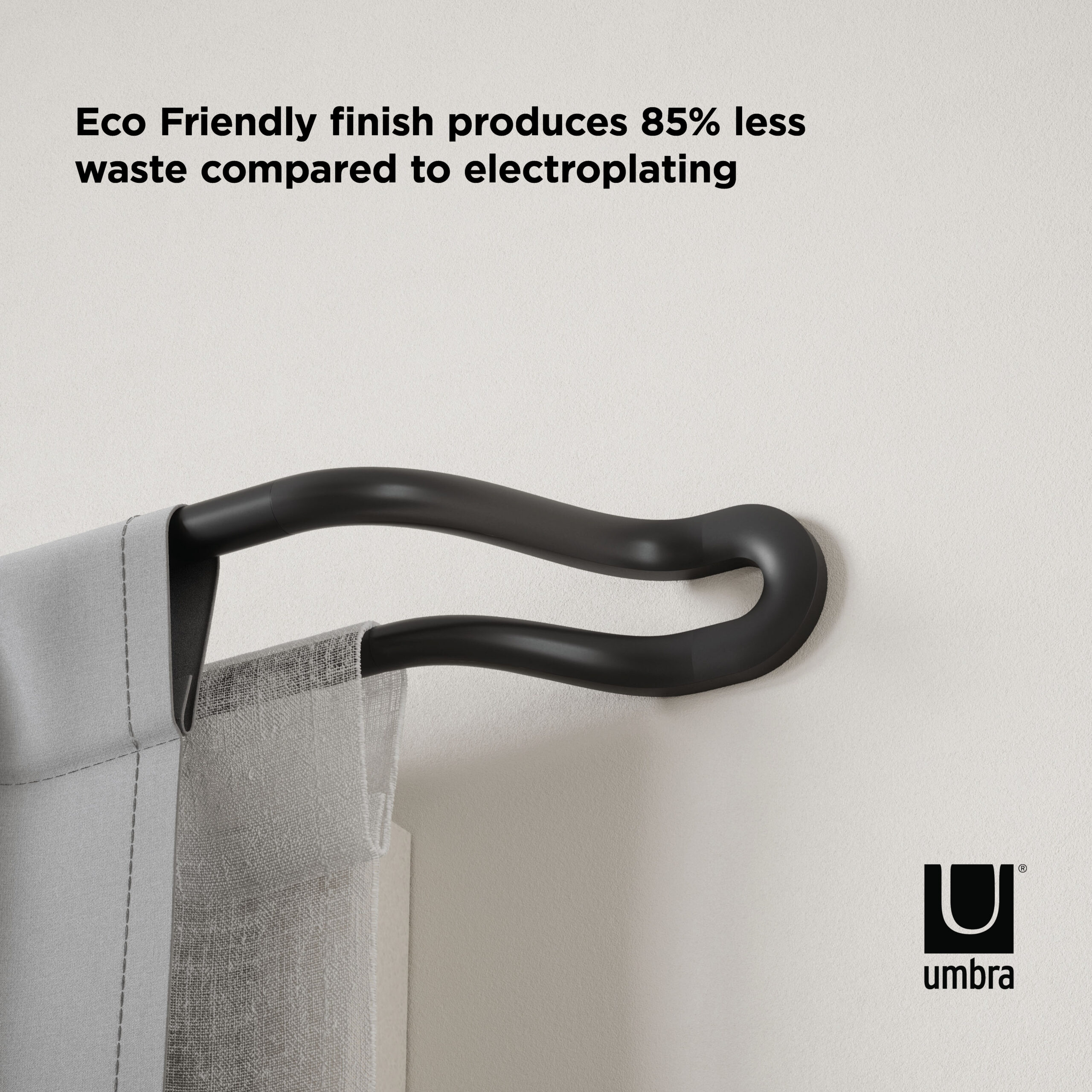 A decorative room-darkening window solution, Midnight features an innovative wrap-around design which helps prevent light leakage. Allowing your curtain or drapery panel to rest directly against the wall, wrap the panel around the curved end of the rod and tuck it behind the bracket to eliminate exterior light from seeping in. Midnight has a strong and stable 3/4 inch diameter, constructed to hold curtains from light to medium weights, with a maximum capacity of 22lbs. This double curtain rod can support 2 curtains and is available in multiple sizes. This curtain rod is made with an eco-friendlier finish. It produces 85% less water and solid waste than traditional electroplating finishes.