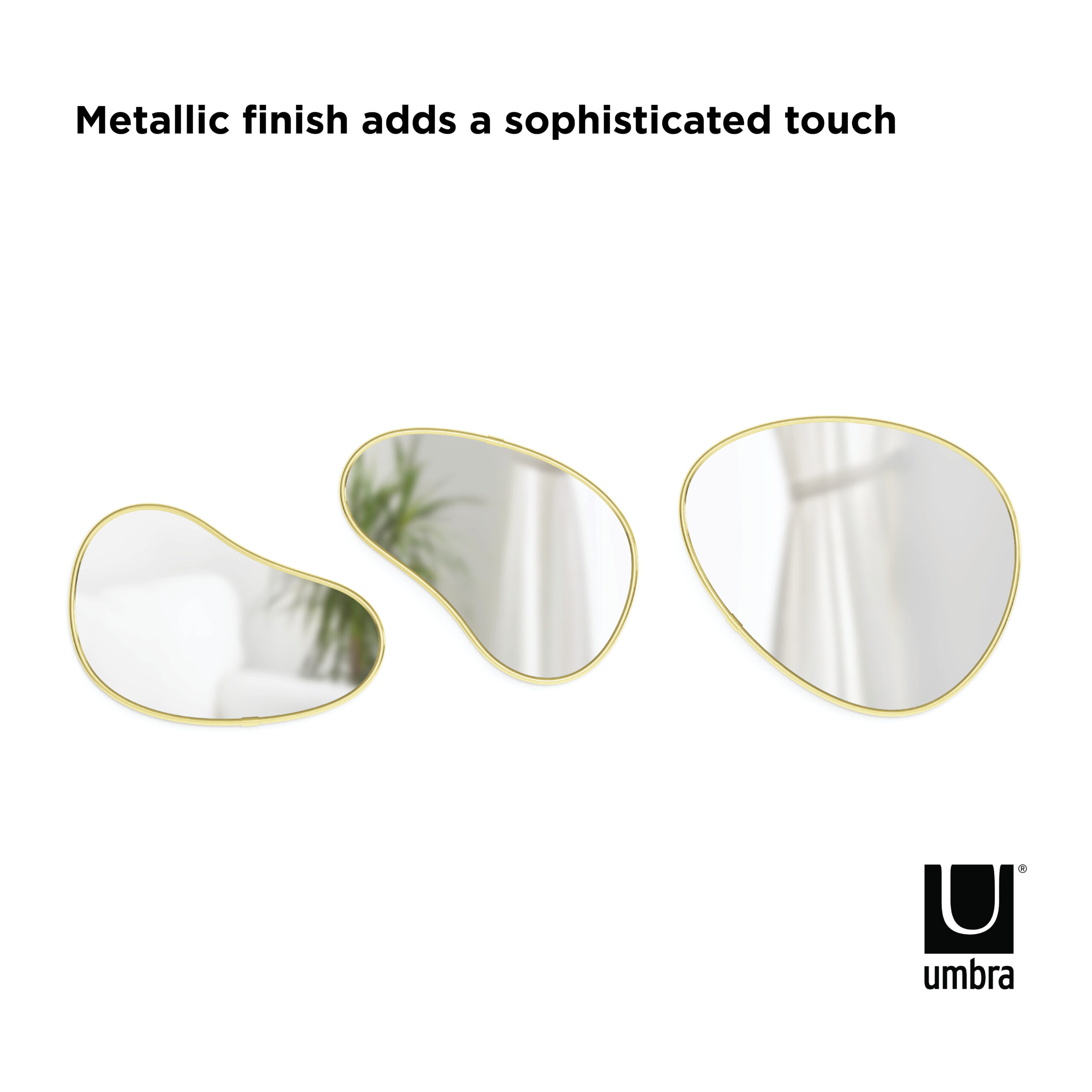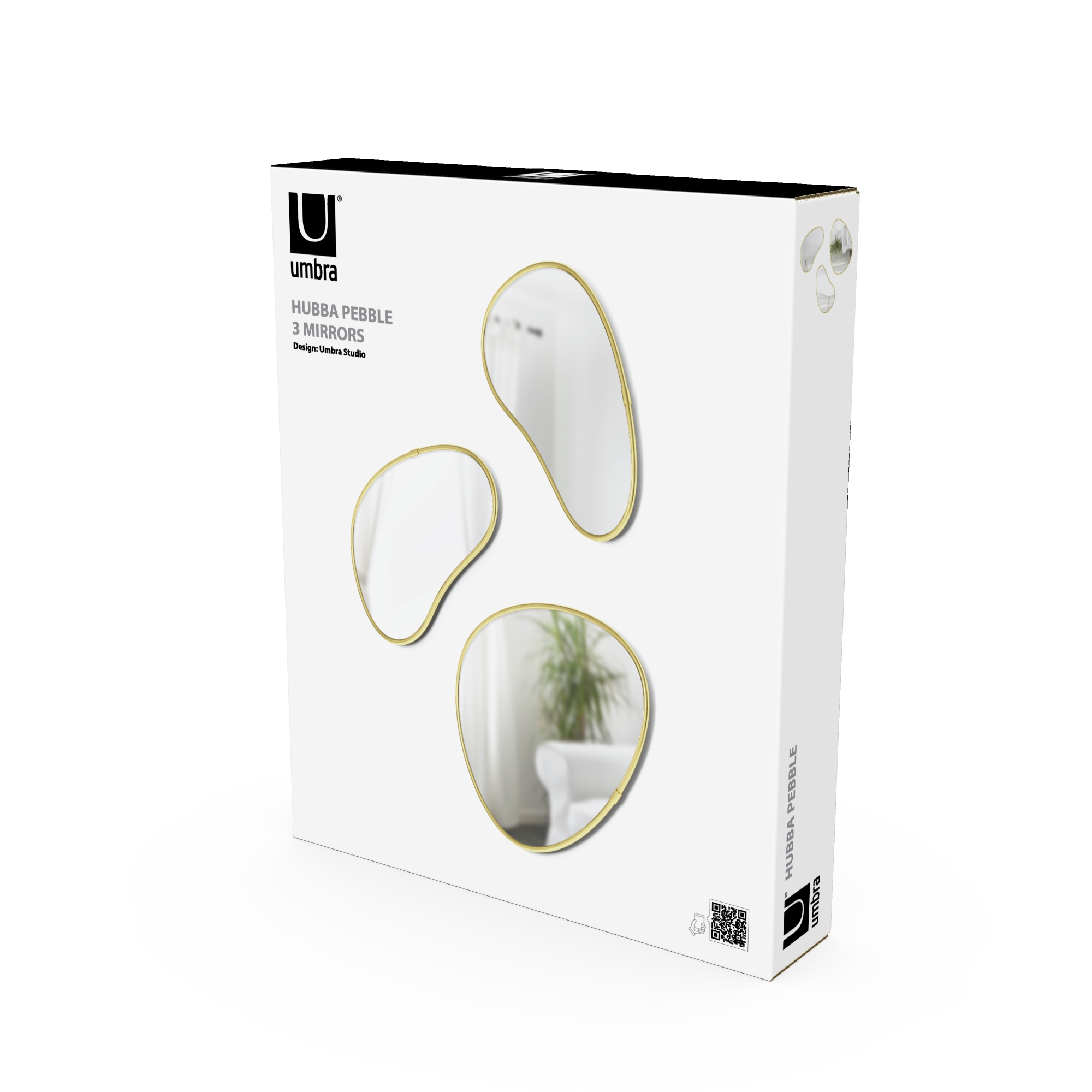 This unique, set of 3 organic-shaped mirrors are a new addition to our Hubba Family. Easy to install with included adhesive strips, hang Pebble in a way that best fits your space. This playful set of mirrors make a perfect addition to a variety of spaces in the home – from entryway to bathrooms, playrooms and more. *For best results, clean your mounting surface before applying adhesives and avoid rough or textured surfaces. ⓘ These Pebble Mirrors are easy to install and come with strong 3M adhesive pads to customize placement. Warning: Surface damage may occur if adhesive mounting is removed.