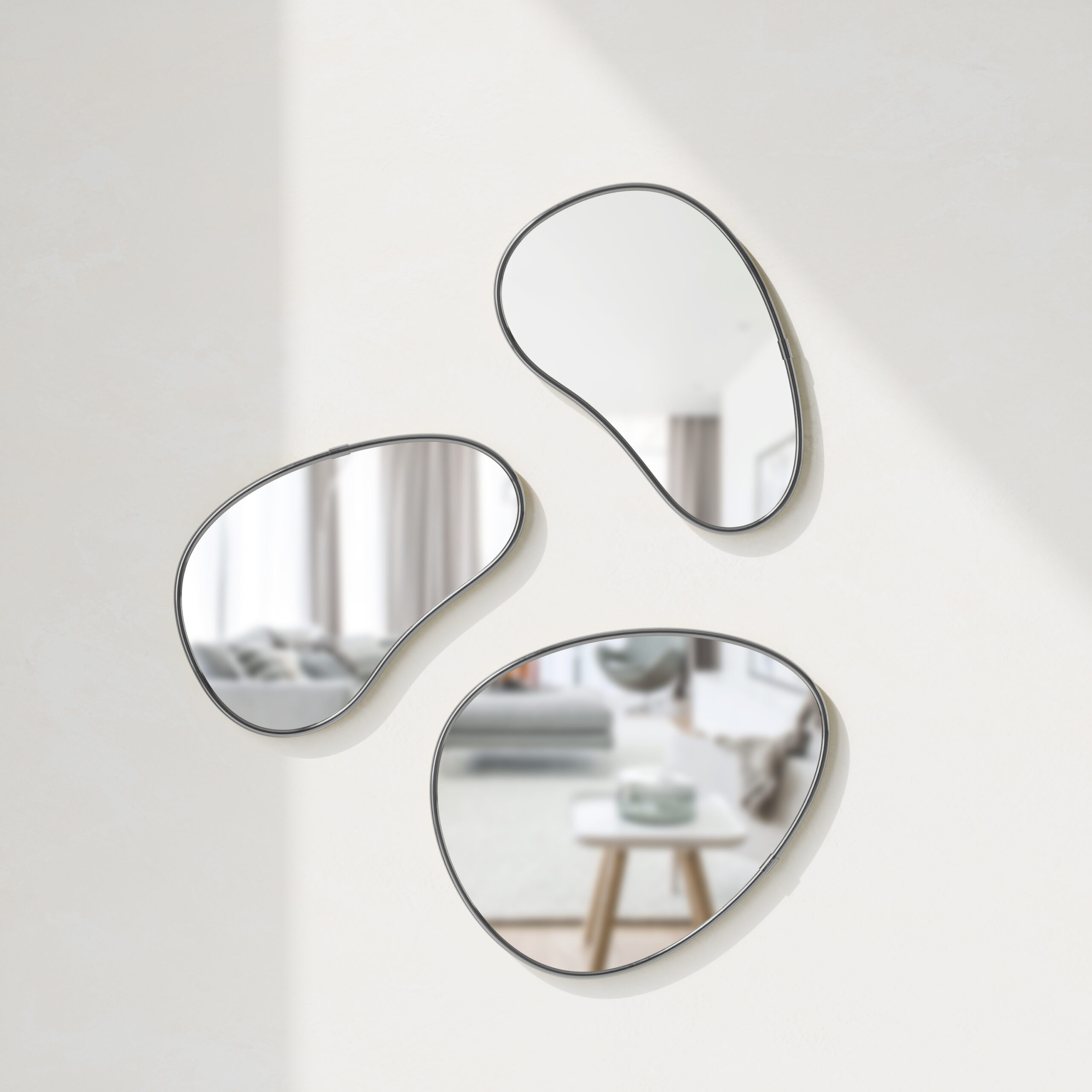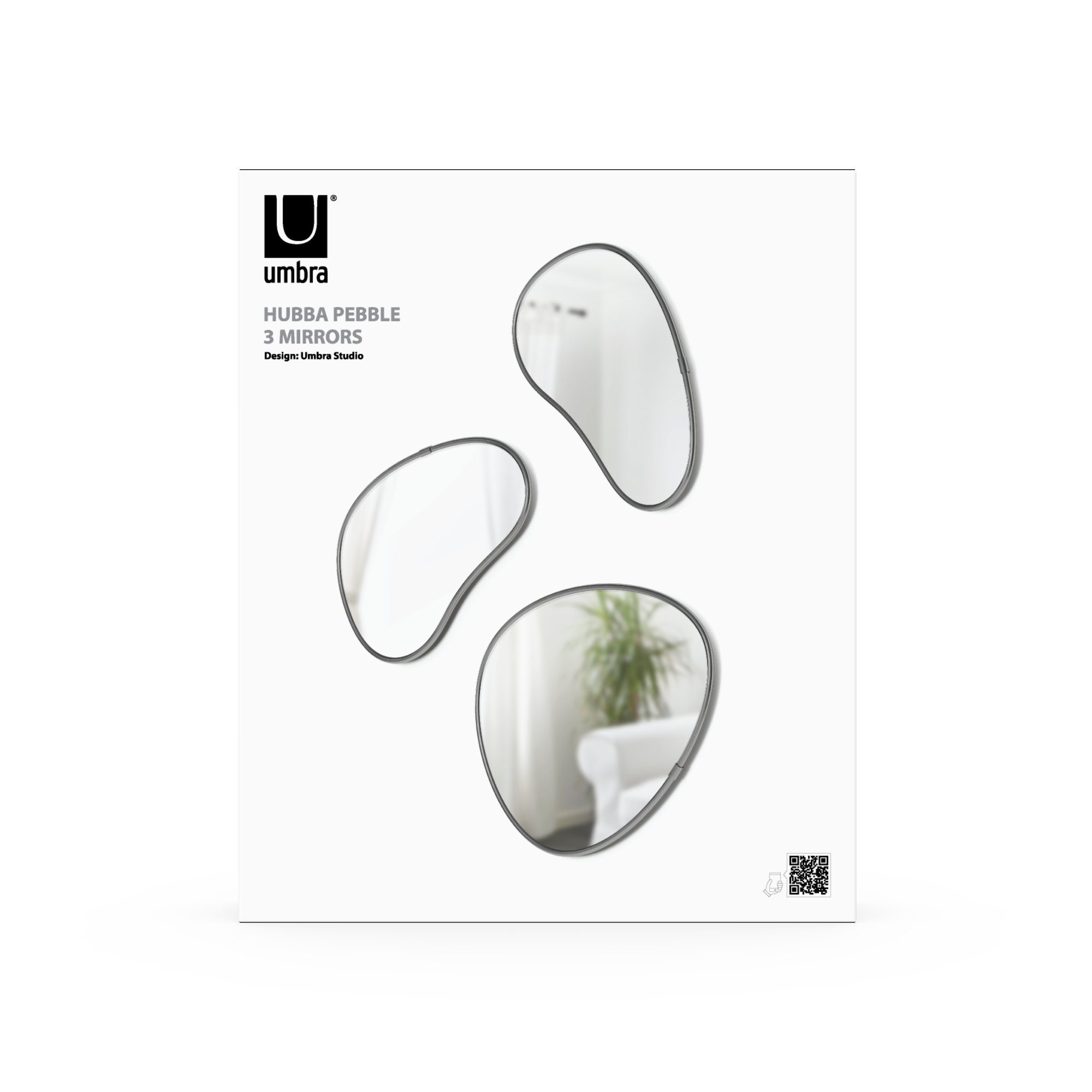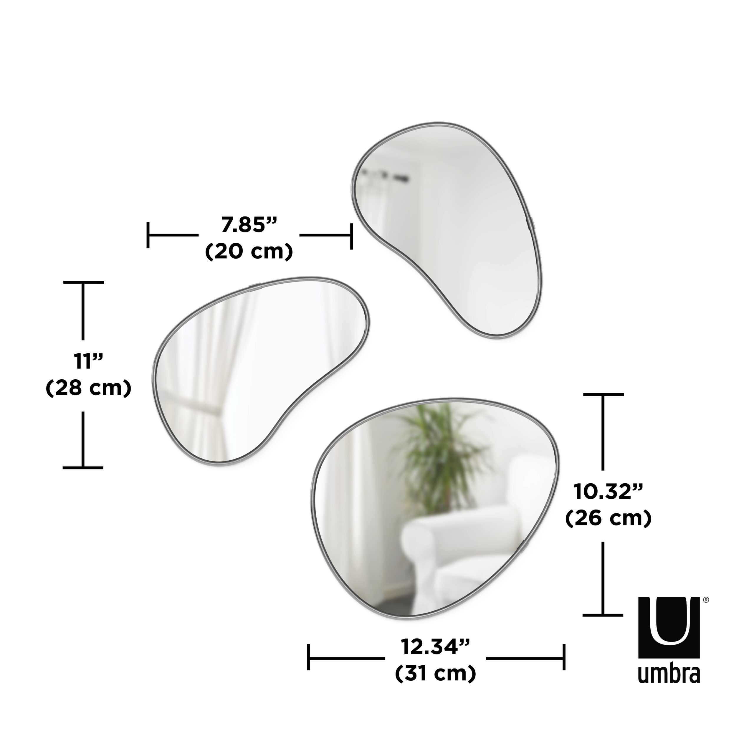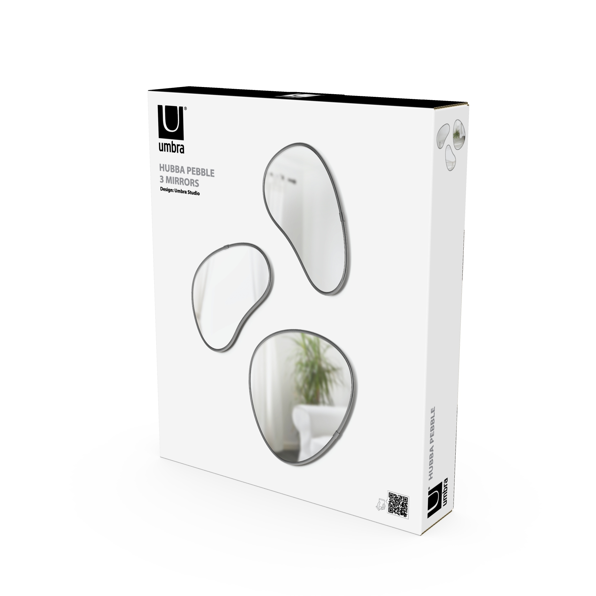 This unique, set of 3 organic-shaped mirrors are a new addition to our Hubba Family. Easy to install with included adhesive strips, hang Pebble in a way that best fits your space. This playful set of mirrors make a perfect addition to a variety of spaces in the home – from entryway to bathrooms, playrooms and more. *For best results, clean your mounting surface before applying adhesives and avoid rough or textured surfaces. ⓘ These Pebble Mirrors are easy to install and come with strong 3M adhesive pads to customize placement. Warning: Surface damage may occur if adhesive mounting is removed.