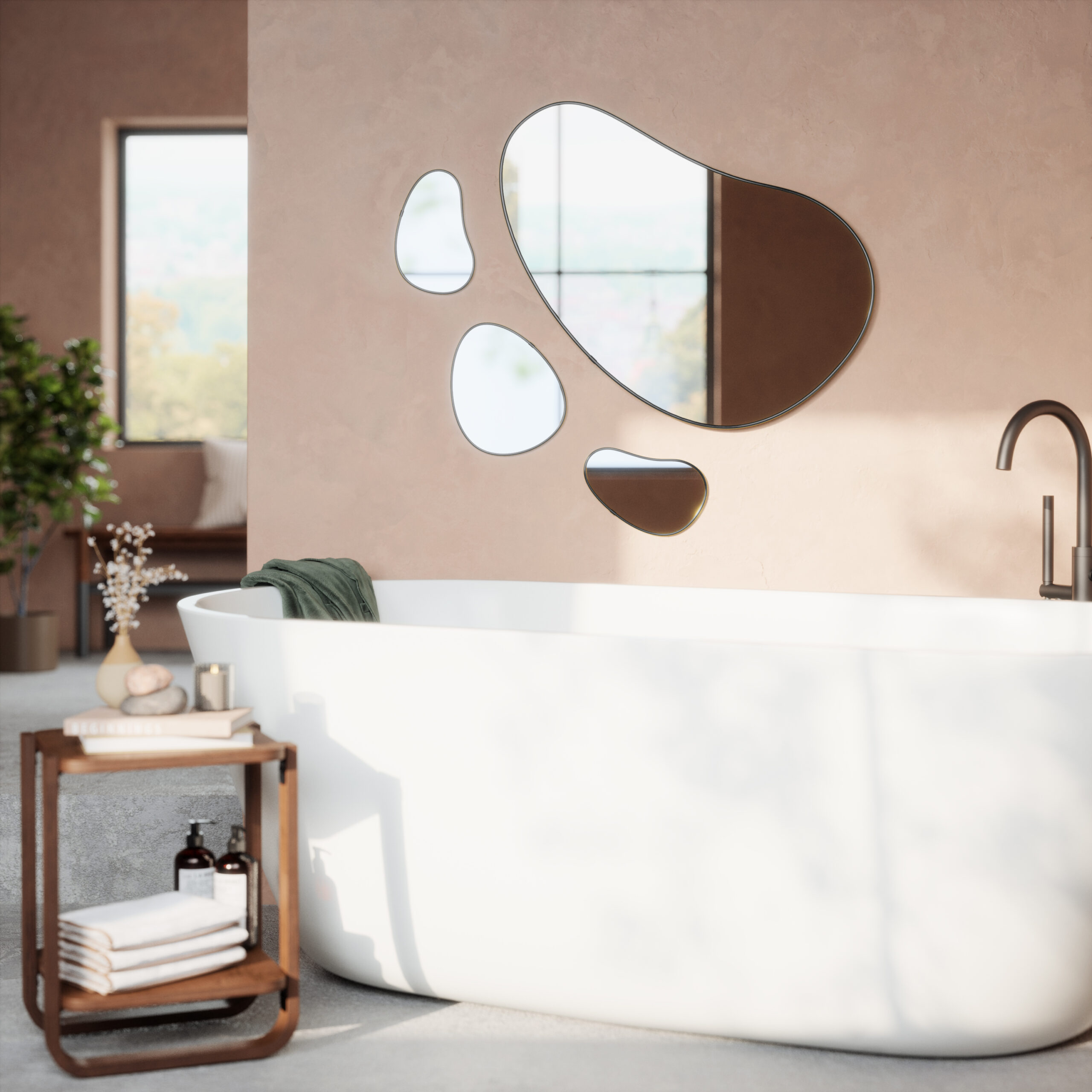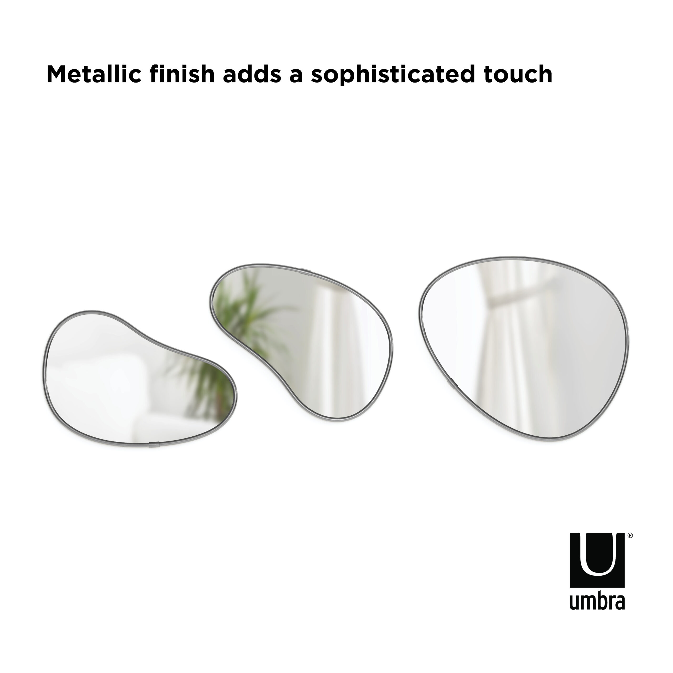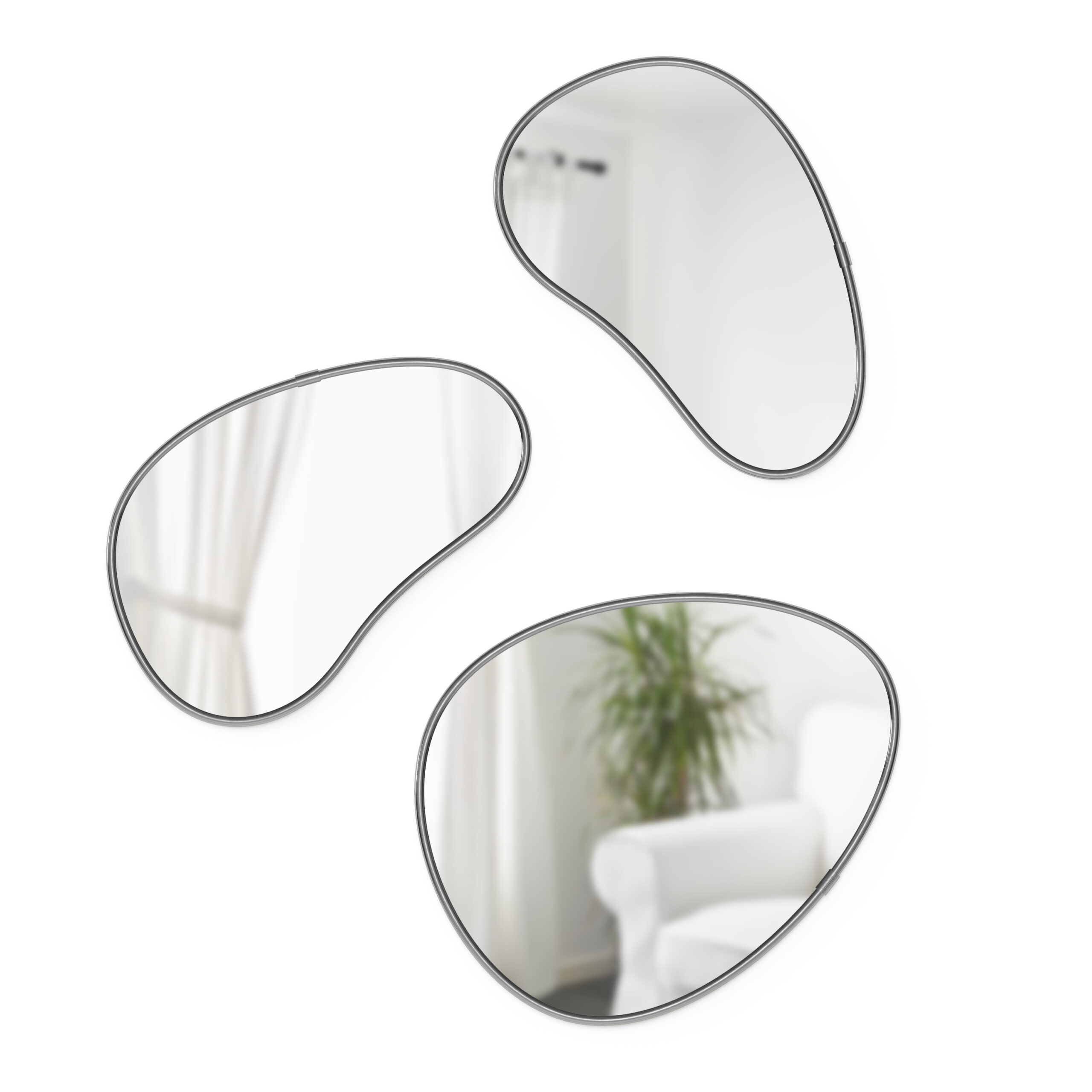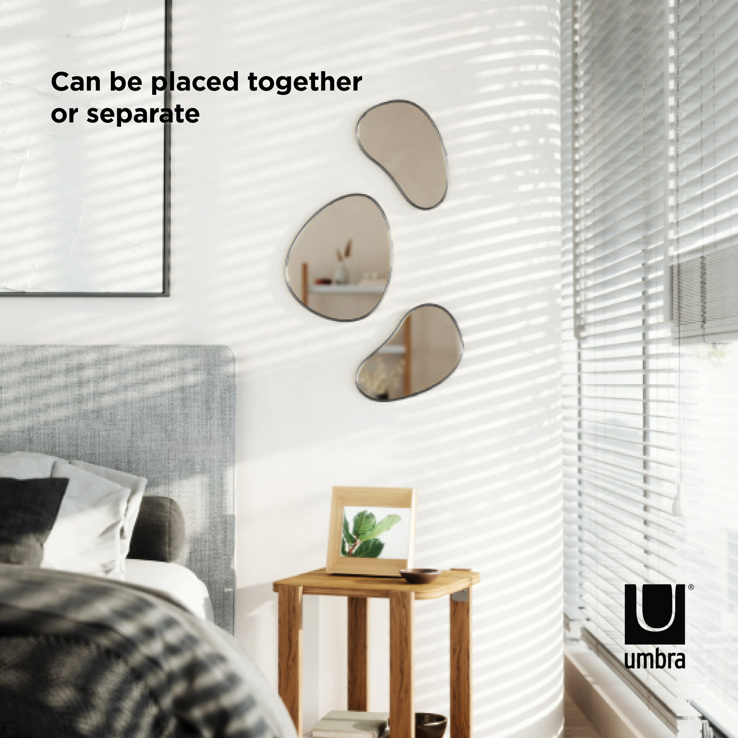 This unique, set of 3 organic-shaped mirrors are a new addition to our Hubba Family. Easy to install with included adhesive strips, hang Pebble in a way that best fits your space. This playful set of mirrors make a perfect addition to a variety of spaces in the home – from entryway to bathrooms, playrooms and more. *For best results, clean your mounting surface before applying adhesives and avoid rough or textured surfaces. ⓘ These Pebble Mirrors are easy to install and come with strong 3M adhesive pads to customize placement. Warning: Surface damage may occur if adhesive mounting is removed.