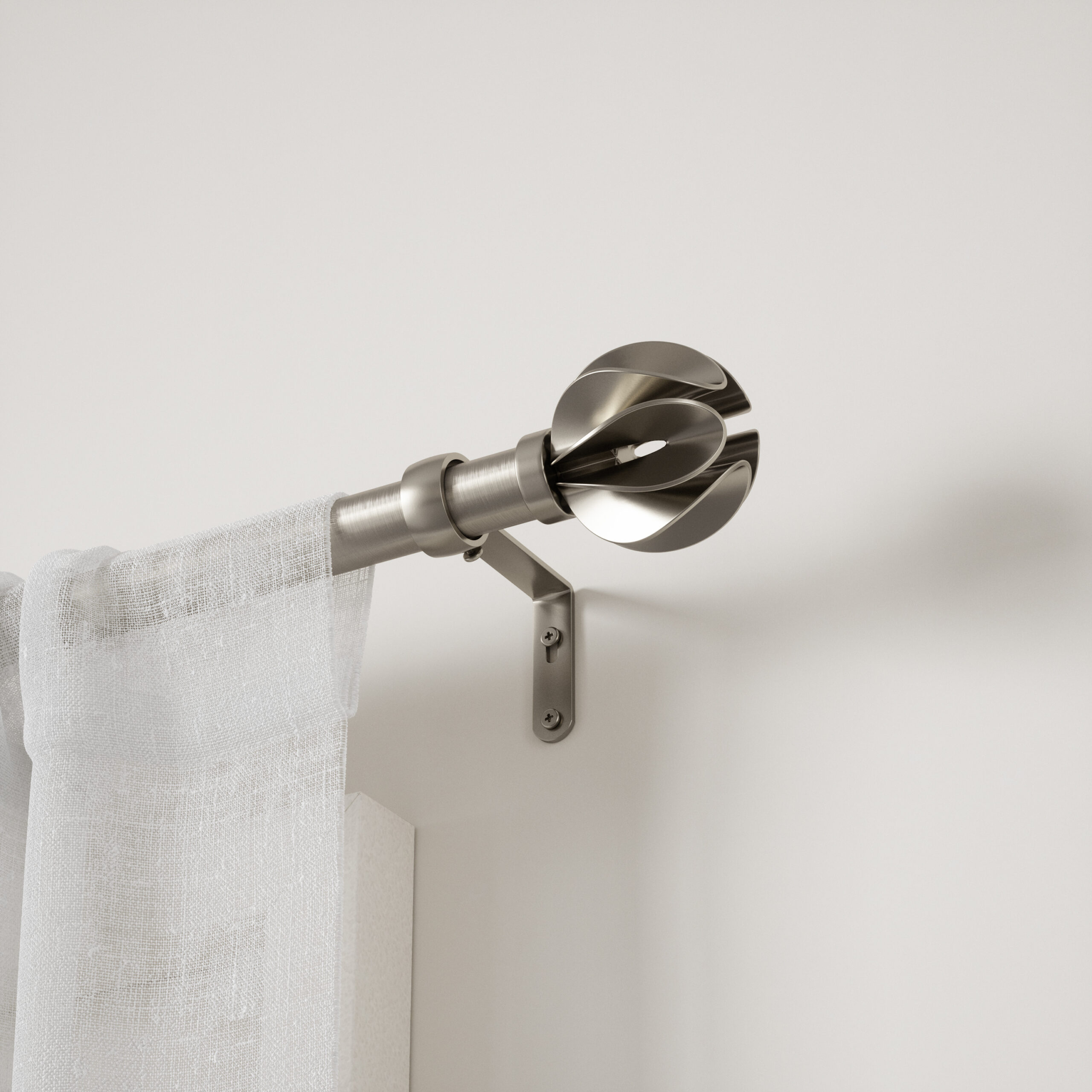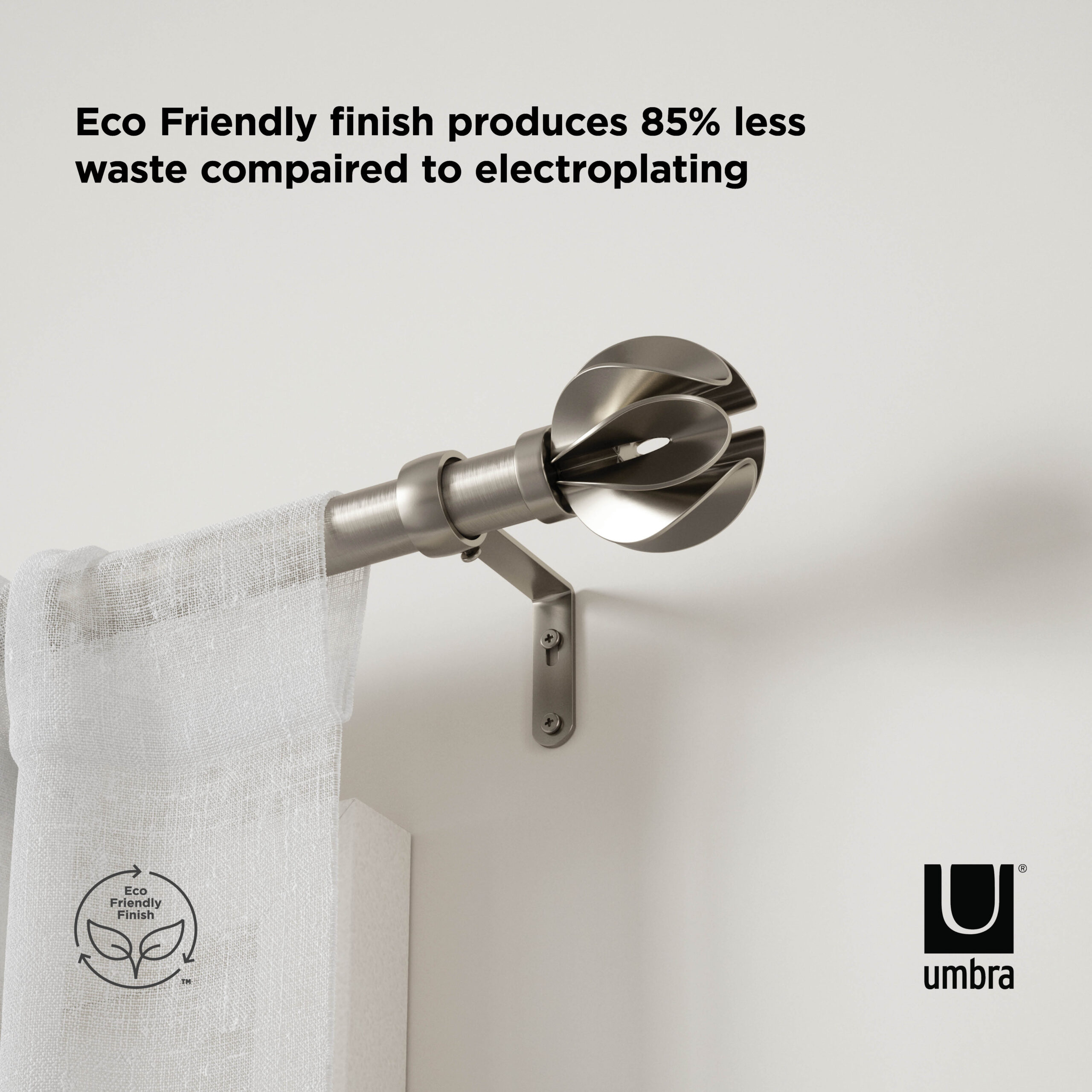 A fresh take on a modern, yet whimsical curtain rod, Blossom features a floral-like inspired finial wrapped in an eco-friendly finish. This adjustable curtain rod fits a wide range of windows and comes with everything you need for an easy installation. Blossom adds a subtle decorative touch without taking away from your curtains. Blossom curtain 1″ (2.5cm) diameter rod supports curtain sets weighing up to 22lbs. (10kg). This curtain rod is made with an eco-friendlier finish. It produces 85% less water and solid waste than traditional electroplating finishes.