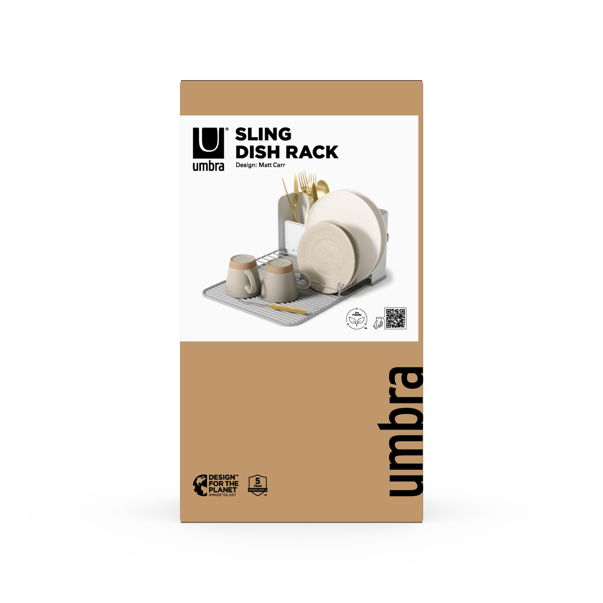 Get organized with SLING DISHRACK today. Made with recycled plastic and included mat is dishwasher-safe.