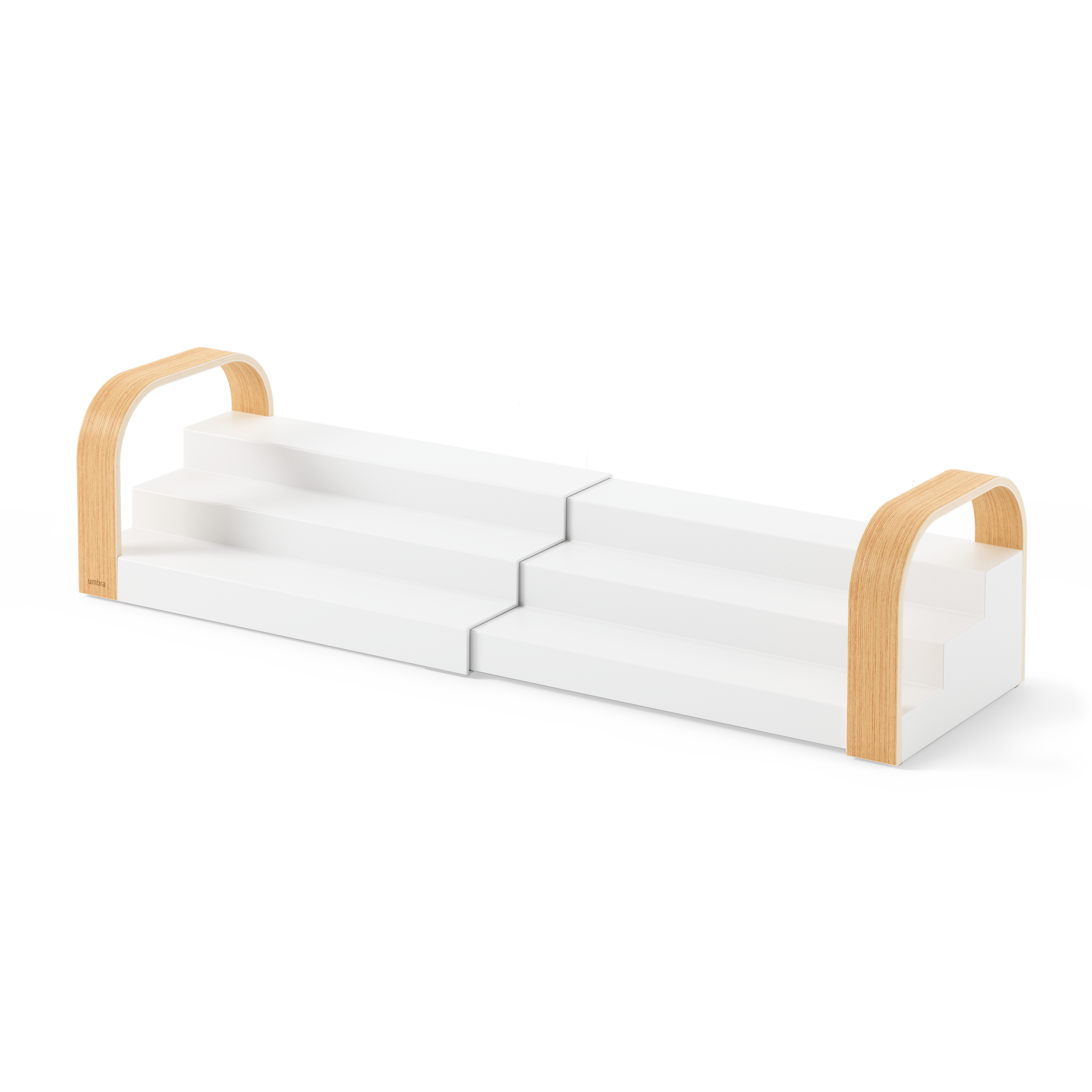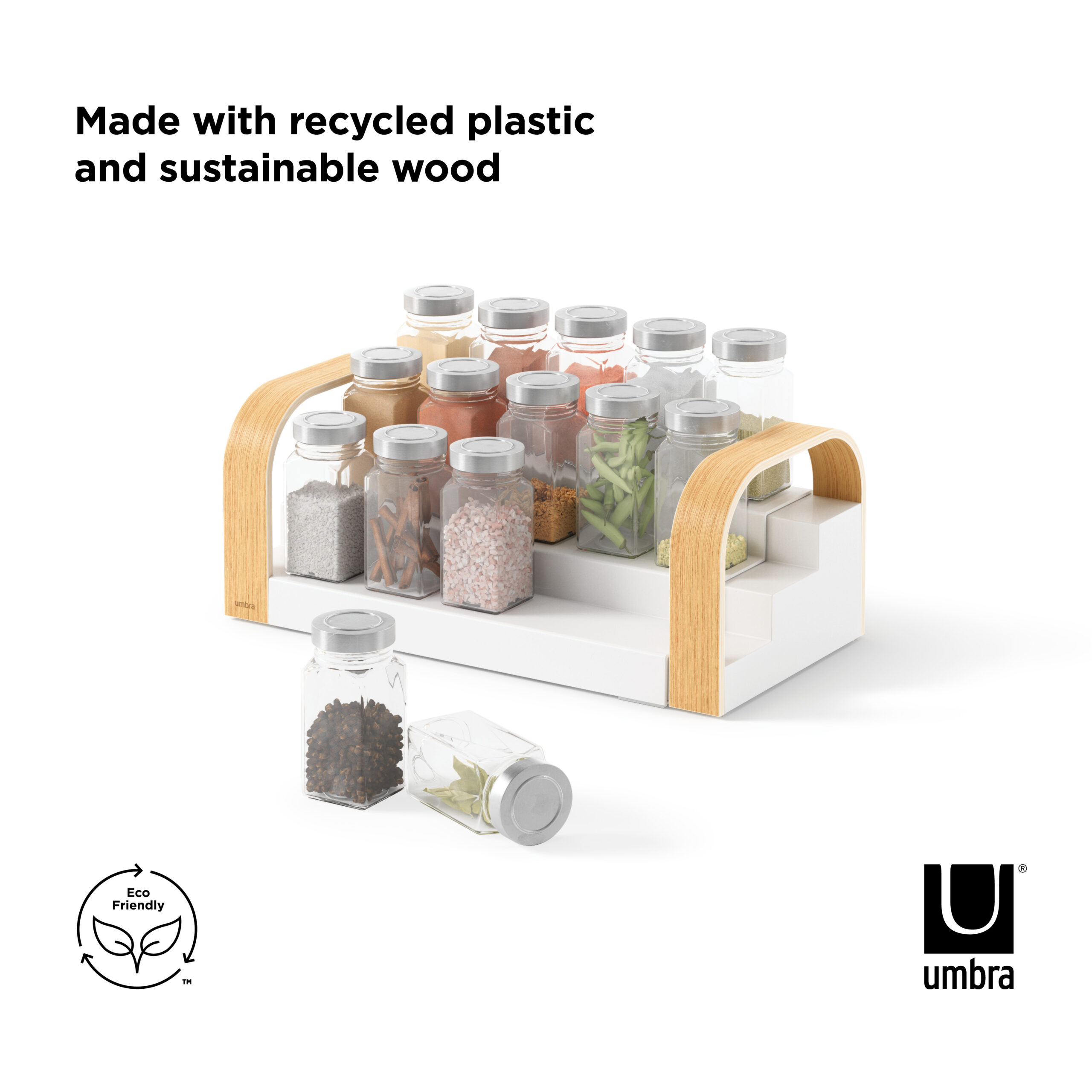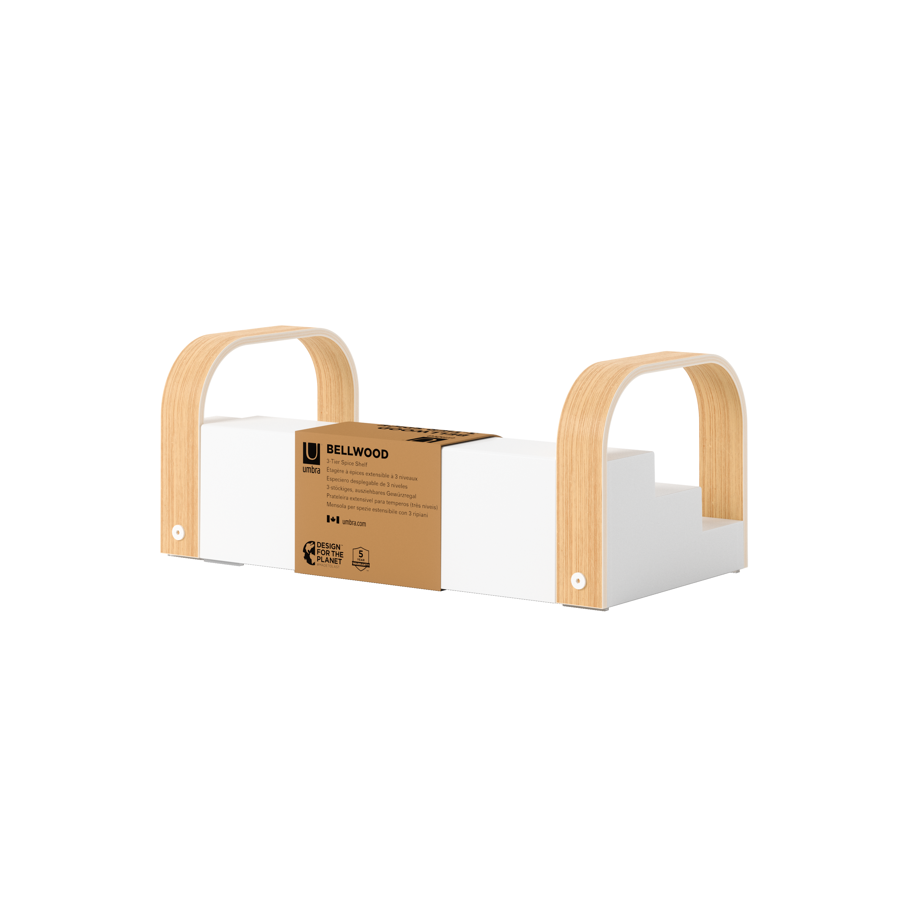 Our Bellwood Three-Tier Spice Shelf is the perfect way to keep your favorite spices organized and close at hand. With three expandable tiers, you can customize this shelf to best fit your cupboard, countertop or shelf space. Plus, it requires no assembly – just take it out of the box and get organized! Made with recycled plastic and sustainable wood materials, pair this with other items from our Bellwood Pantry Collection for a cohesive look. Can also be used in other spaces. Measures 20.75 x 6.25 x 5″ (52.7 x 15.8 x 12.7 cm). ♻️ Made from 70% recycled plastic and comes from renewable wood sources. Wood is a unique natural material with variations in tone, texture, and grain. The product may vary from our imagery. ⓘ For Best Care: wipe with a clean damp cloth