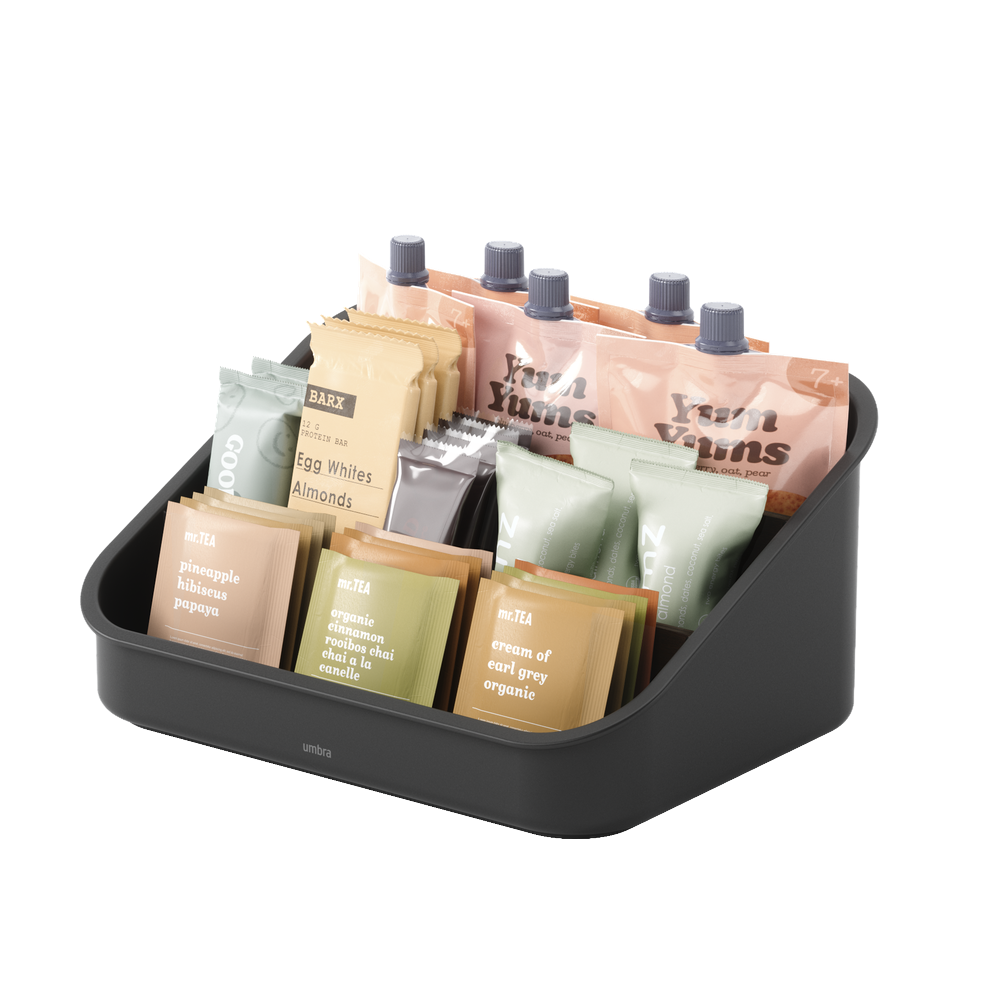 Get organized with Bellwood Packet Organizer! Featuring three tiers of storage along with removable dividers, you can now keep all your treats neat and tidy in one place. Perfect for storing and organizing everything from tea bags and instant coffee packets to sweeteners and chocolates, this multi-use packet organizer will free up space in any kitchen. Its free-standing and compact design is perfect for use on the counter or tabletop next to your electric kettle to provide convenient access to items while making coffee or tea. The included removable dividers make it easy to clean but also allow you to customize the organizer to best fit your items. Made with recycled plastic and sustainable wood materials, pair this with other items from our Bellwood Pantry Collection for a cohesive look. Measures 10.4 x 7.8 x 5 inches (26.4 x 19.8 x 12.7 cm). ♻️ Made from 80% recycled plastic and 19% renewable wood sources. Wood is a unique natural material with variations in tone, texture, and grain. The product may vary from our imagery.