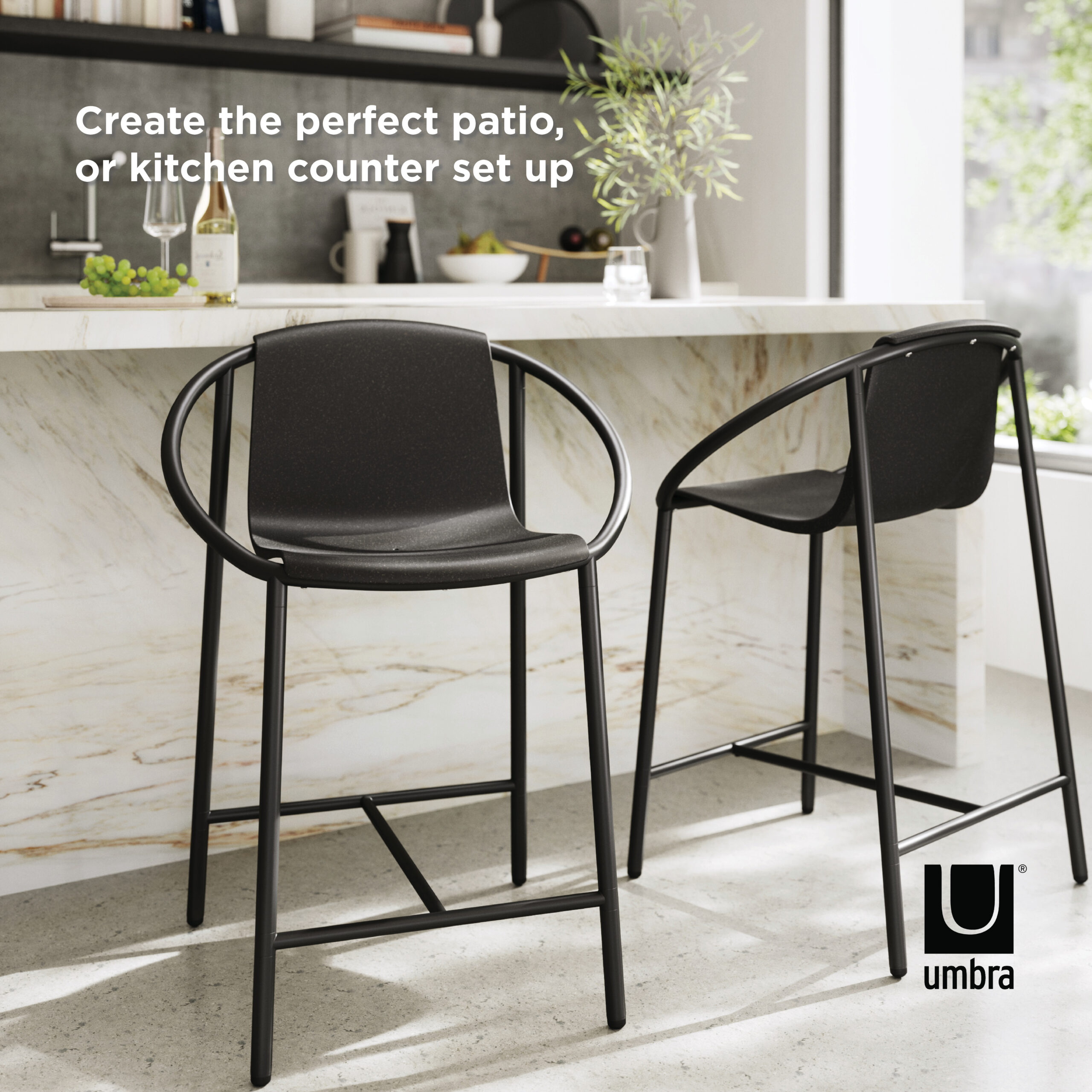 Introducing the Ringo counterstool – a stylish and practical addition to any indoor or outdoor space. Crafted with an attractive bent metal frame and an organic shape, this counterstool is not only rust-proof but also durable. Its molded mixed wood fiber composite seat is eco-friendly and features a long-lasting powder coated finish. The ergonomic injection-molded seat ensures maximum comfort for sitting and lounging. Need more than one? No problem! The Ringo counterstool allows you to create the perfect patio or kitchen counter setup. With dimensions of 25.25 x 22.75 x 35.5 inches (64 x 58 x 90 cm), and a weight capacity of 220lbs. (100kg) per chair, this counterstool is both functional and stylish. Seating height is set at 24″ (61 cm), providing the perfect perch for your space.