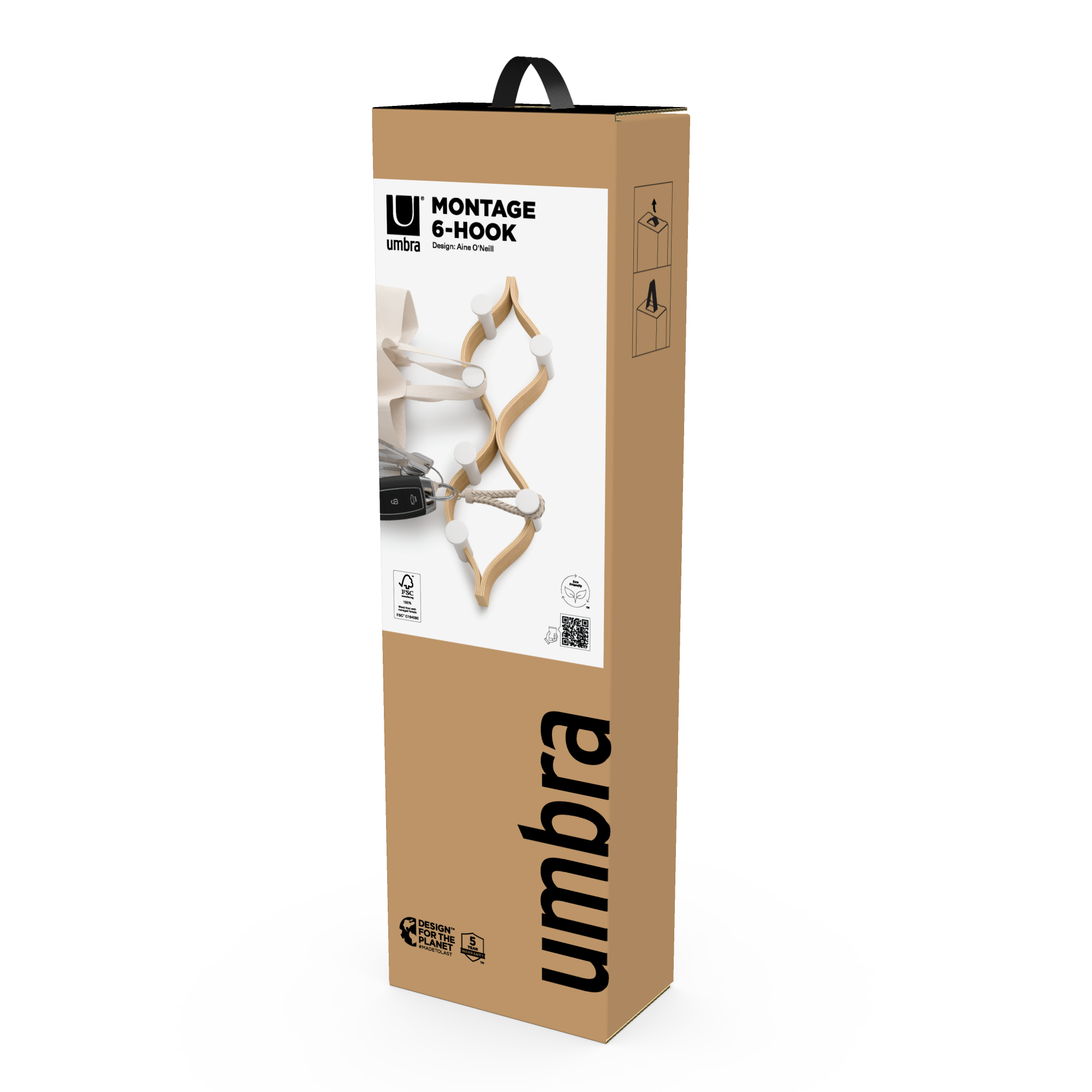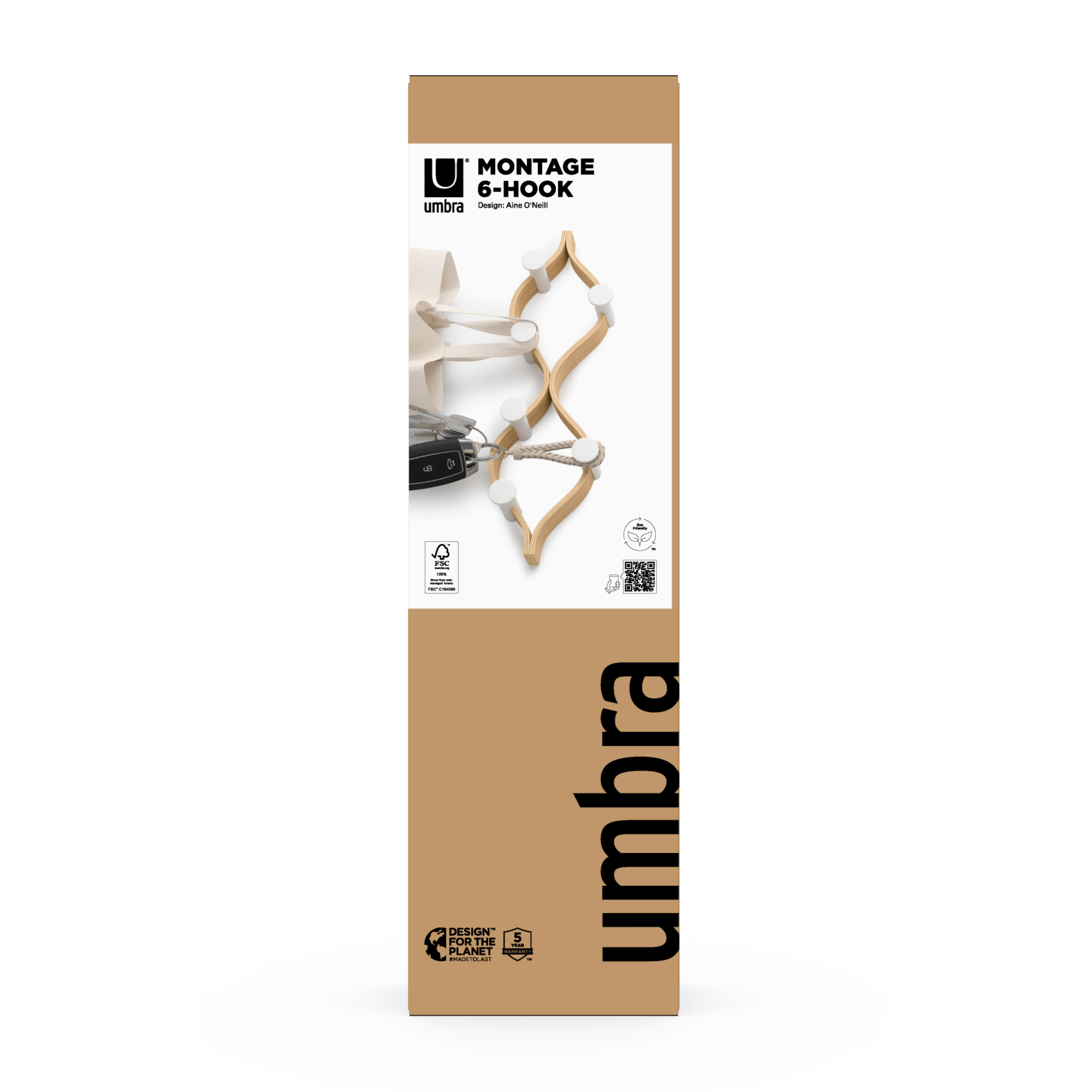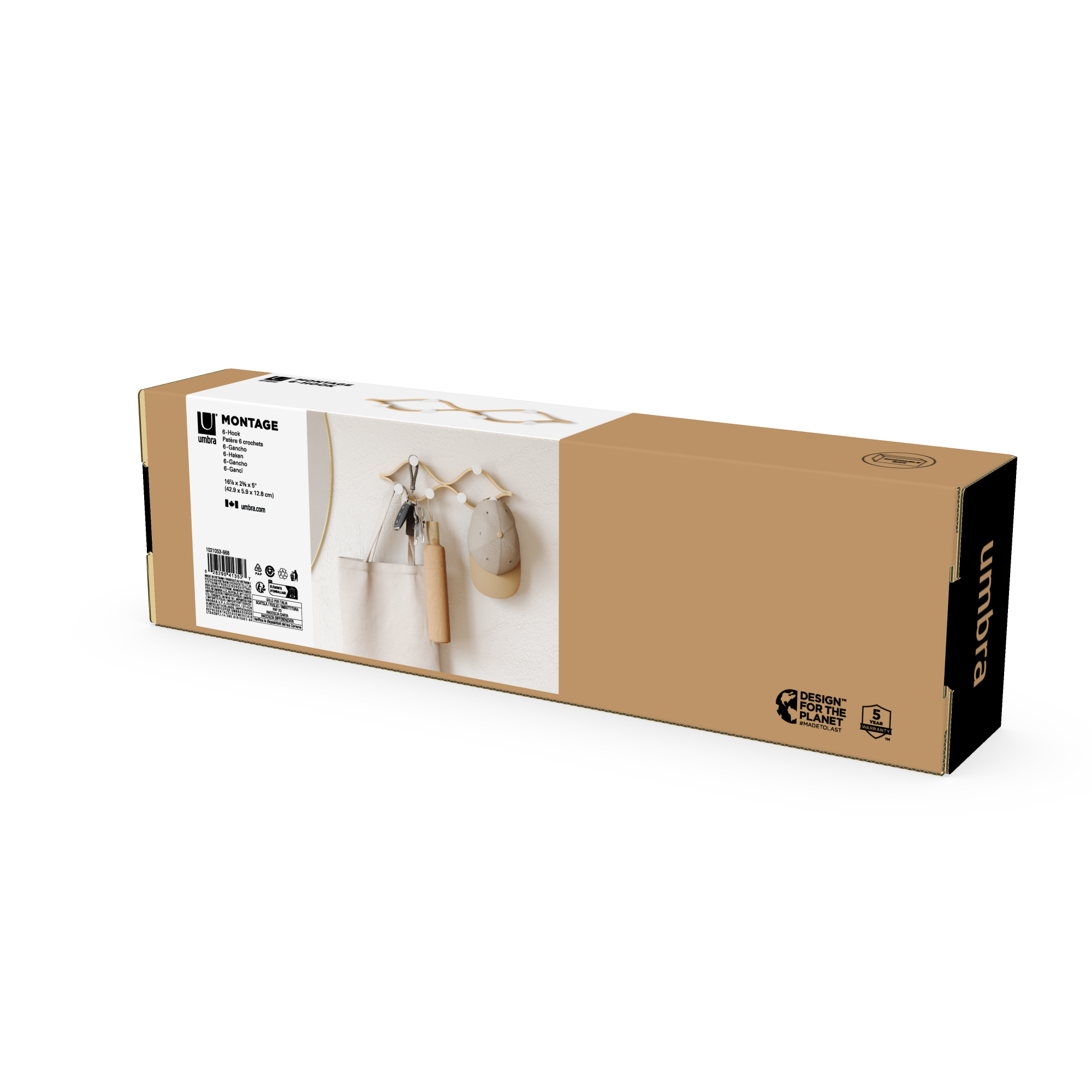 Elevate your organization with the Umbra Montage 6 Hook. Its modern bent-wood design seamlessly blends into any décor while offering ample storage with six hooks for coats, hats, scarves, and more. Crafted from renewable wood sources, it’s both stylish and environmentally friendly. Pair it with our Montage Collection for a cohesive, curated look in your home. Max weight capacity of 30lbs. (13.6kg).