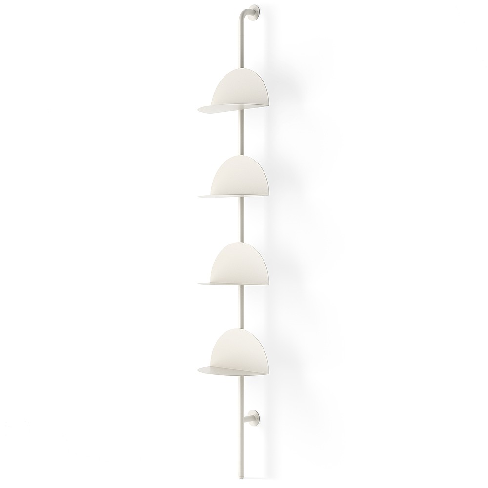 Introducing the Solis Shelf: an eye-catching and versatile solution to elevate your display game. Crafted with precision, this set features four half-circle steel shelves elegantly mounted on a pole that effortlessly integrates with your space. The innovative design offers flexibility, allowing you to choose between two mounting options for each shelf: half-moon facing up or down. Plus, customize the spacing between shelves to perfectly showcase your favorite items, whether at home, in retail displays, or at trade shows. Constructed from durable bent steel, each shelf supports up to 15lbs. (6.8kg) of your prized possessions. Use multiple shelves to create your own customized eye-catching statement. Measures 13.88 x 10.5 x 80.13″ (35 x 27 x 204 cm).